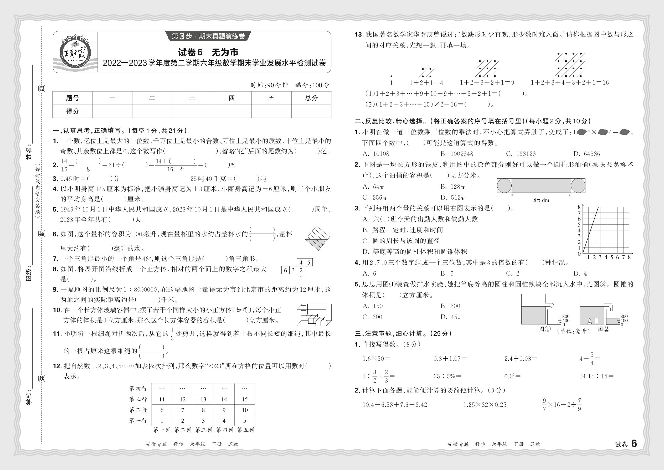 安徽省芜湖市无为市2022—2023学年度第二学期六年级数学期末学业发展水平检测试卷(苏教版)【6】