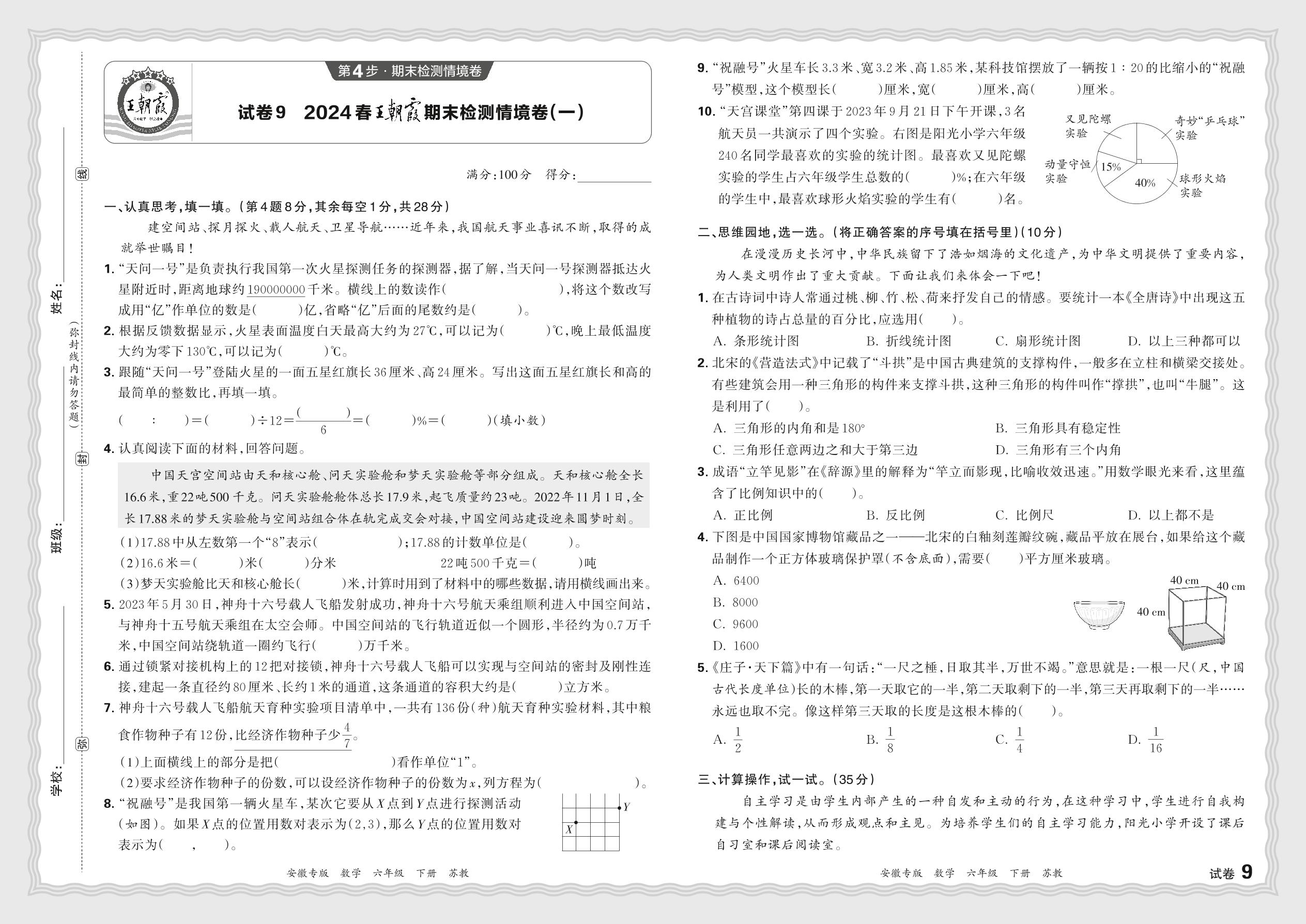 2024春下册六年级数学苏教版 王朝霞期末检测情境卷(一)