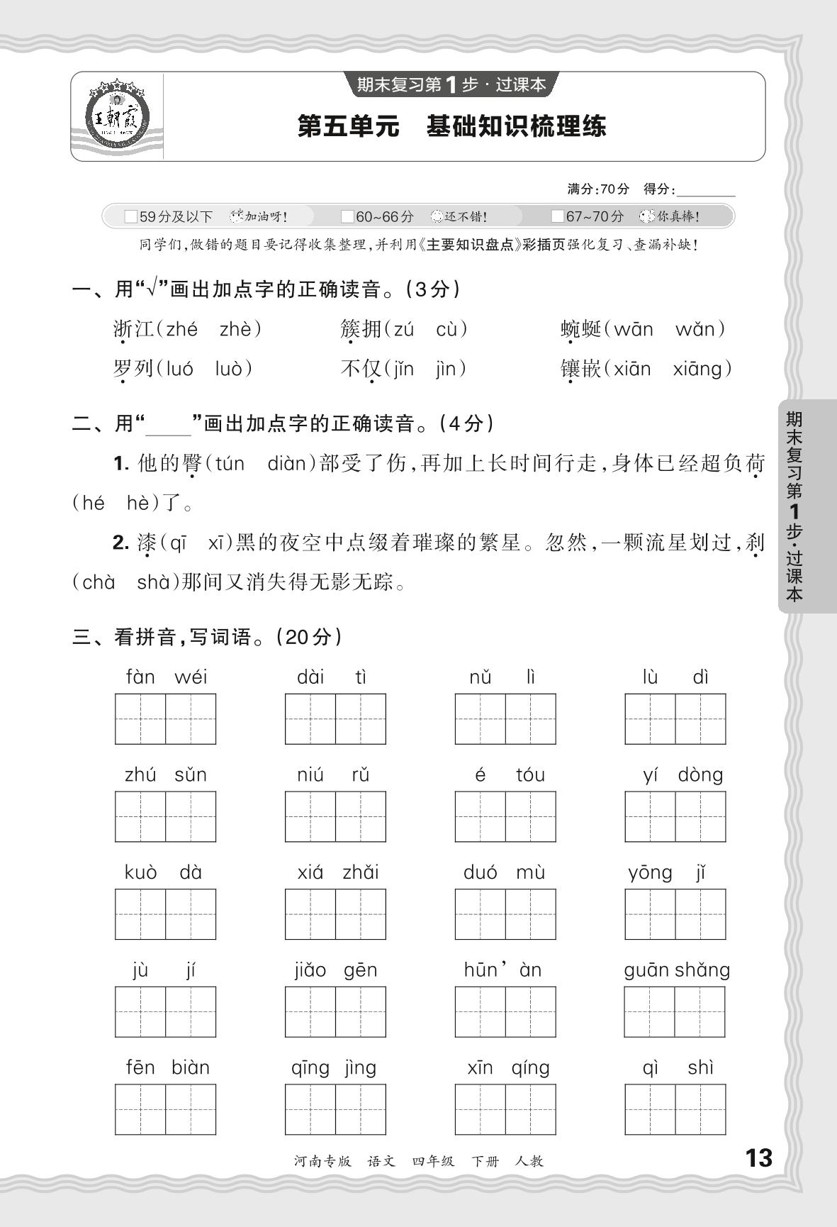 2024春下册四年级语文人教版 期末过课本河南版·第五单元 基础知识梳理练