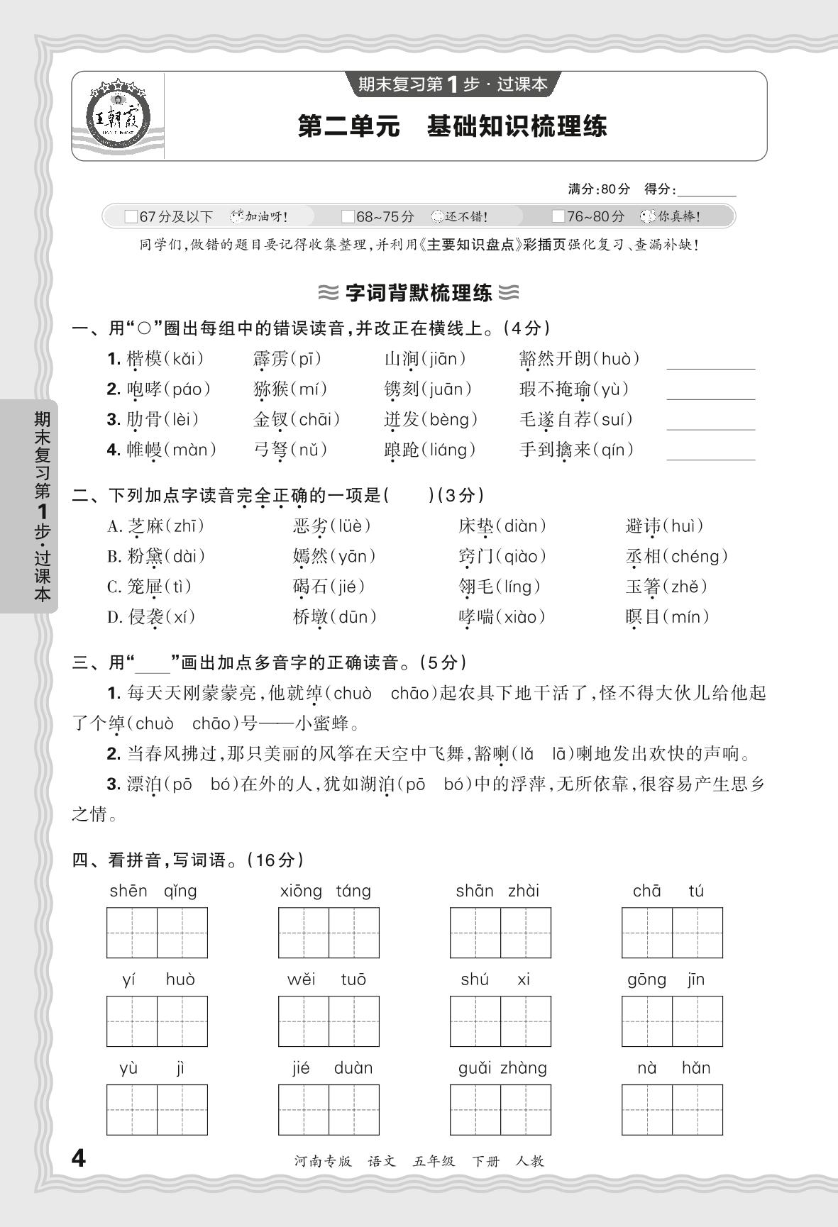 2024春下册五年级语文人教版 期末过课本河南版·第二单元 基础知识梳理练