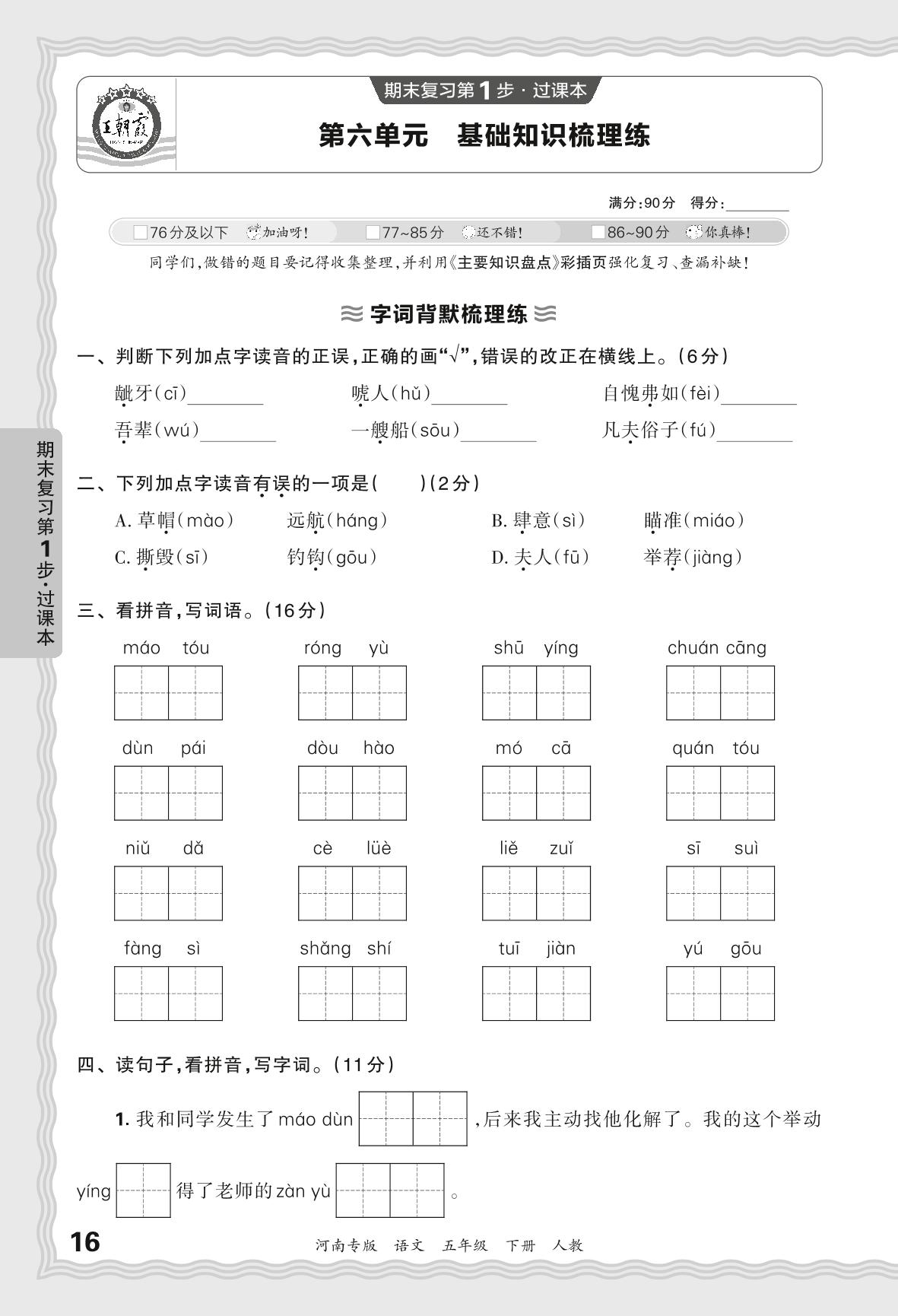 2024春下册五年级语文人教版 期末过课本河南版·第六单元 基础知识梳理练