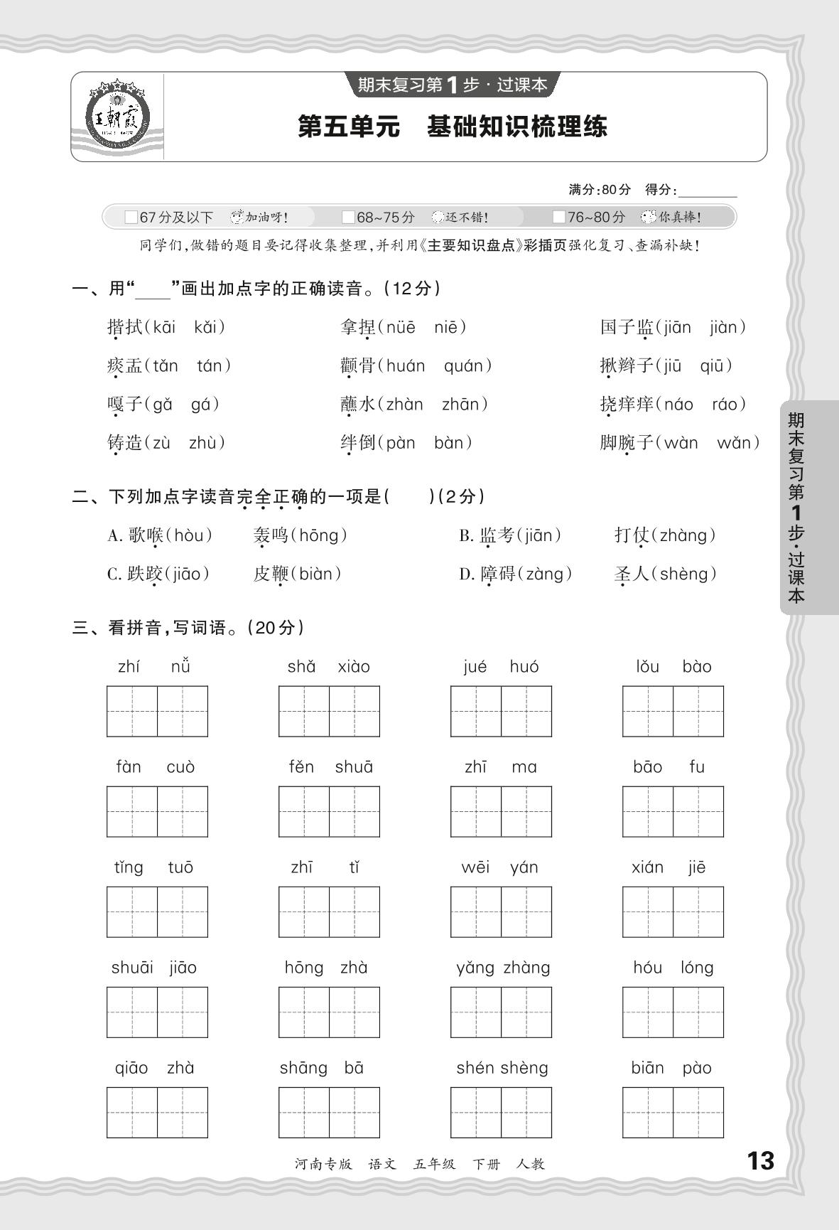 2024春下册五年级语文人教版 期末过课本河南版·第五单元 基础知识梳理练