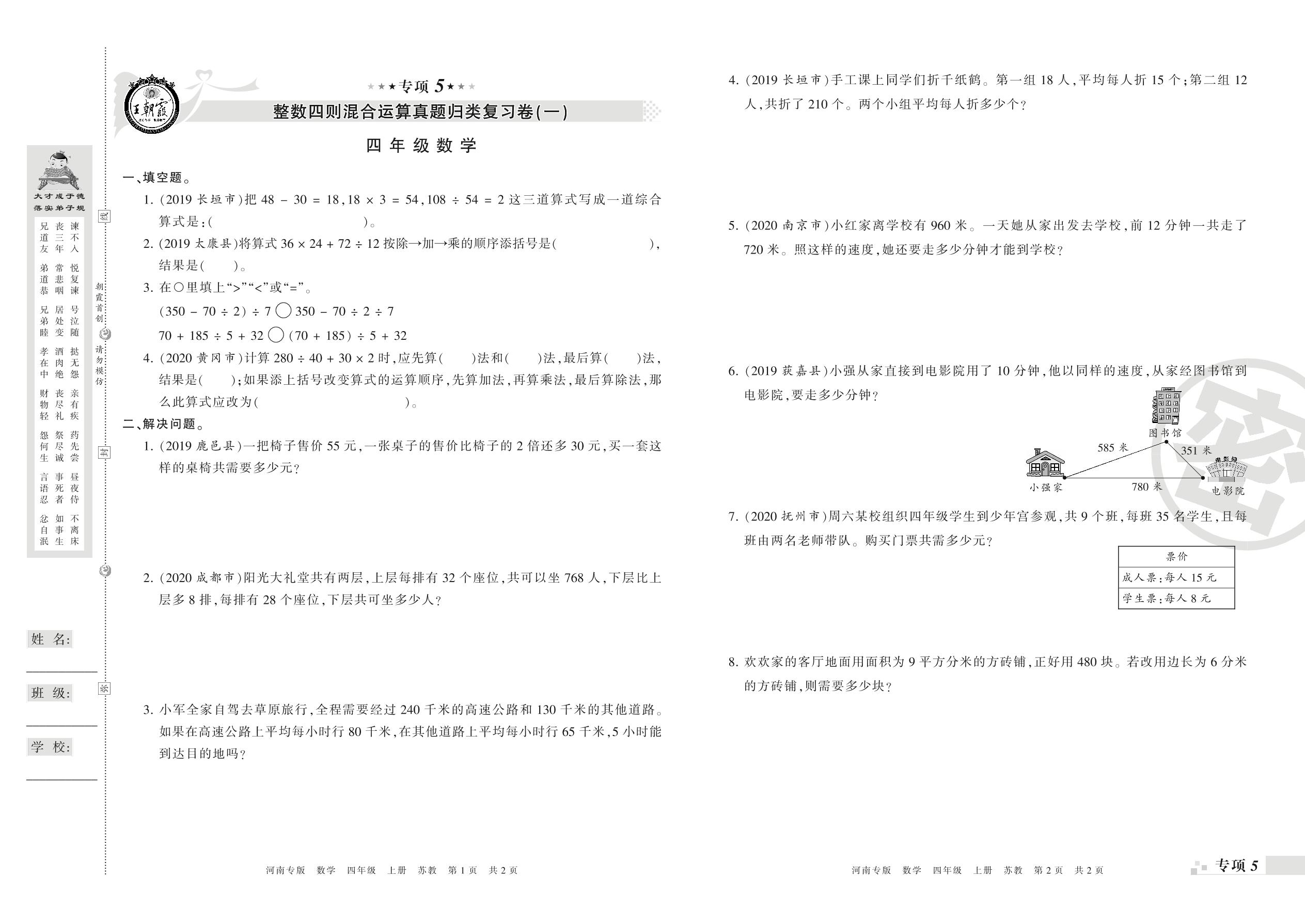 王朝霞期末专项卷——整数四则混合运算真题归类复习四年级上册数学(苏教版)【0】
