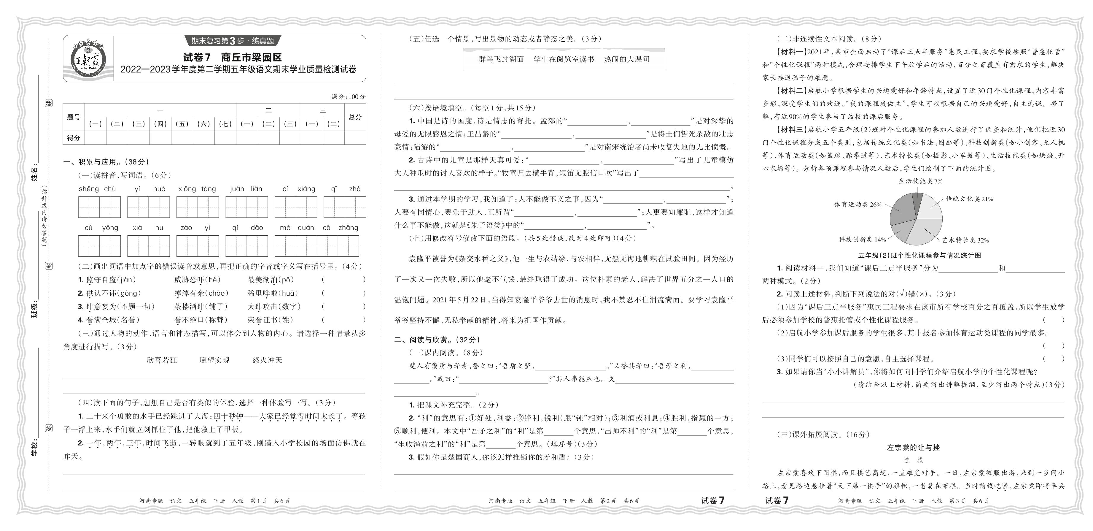 河南省商丘市梁园区2022—2023学年度第二学期五年级语文期末学业质量检测试卷【7】