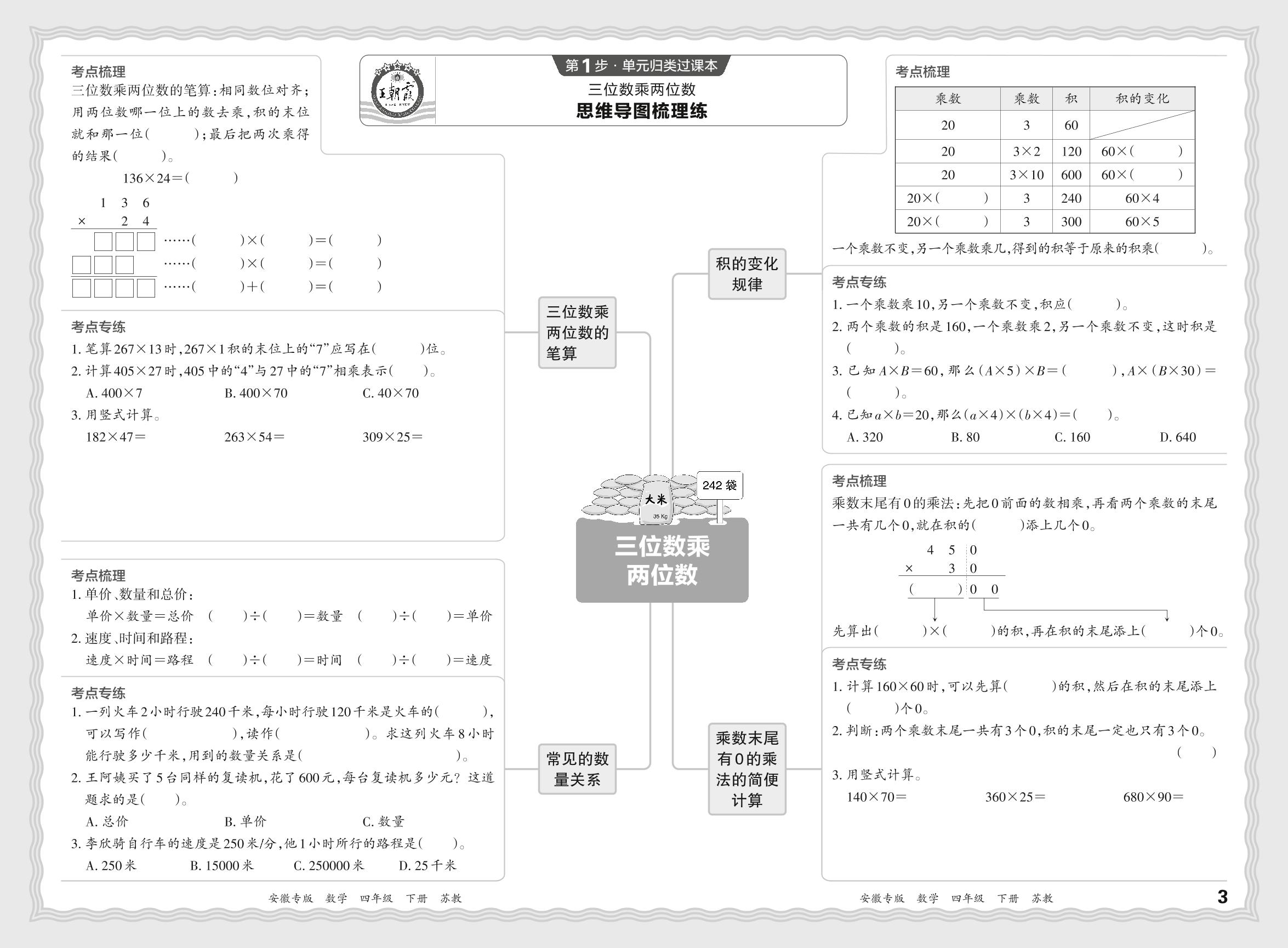 2024春下册四年级数学苏教版 期末过课本安徽版·单元归类复习练——三位数乘两位数【2】
