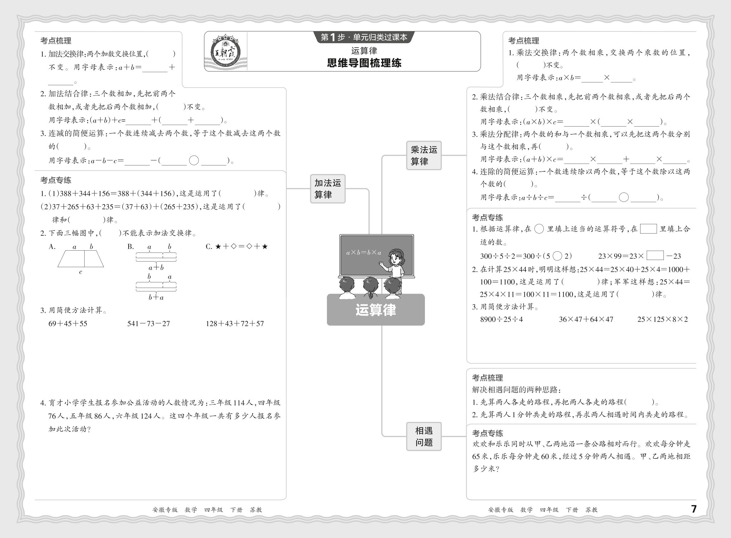 2024春下册四年级数学苏教版 期末过课本安徽版·单元归类复习练——运算律【4】