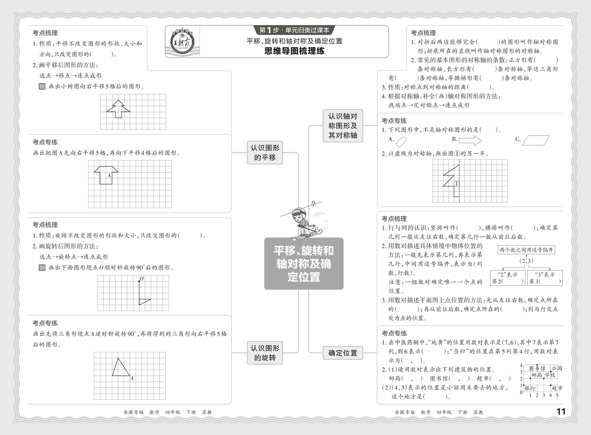 2024春下册四年级数学苏教版 期末过课本安徽版·单元归类复习练——平移、旋转和轴对称及确定位置【6】
