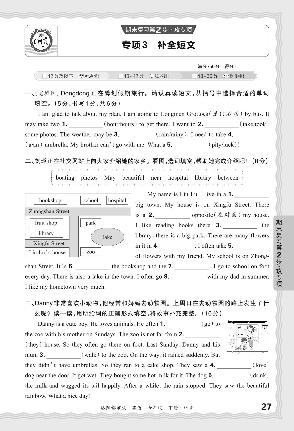 2024春下册六年级英语科普版 期末专项卷洛阳版·补全短文【3】
