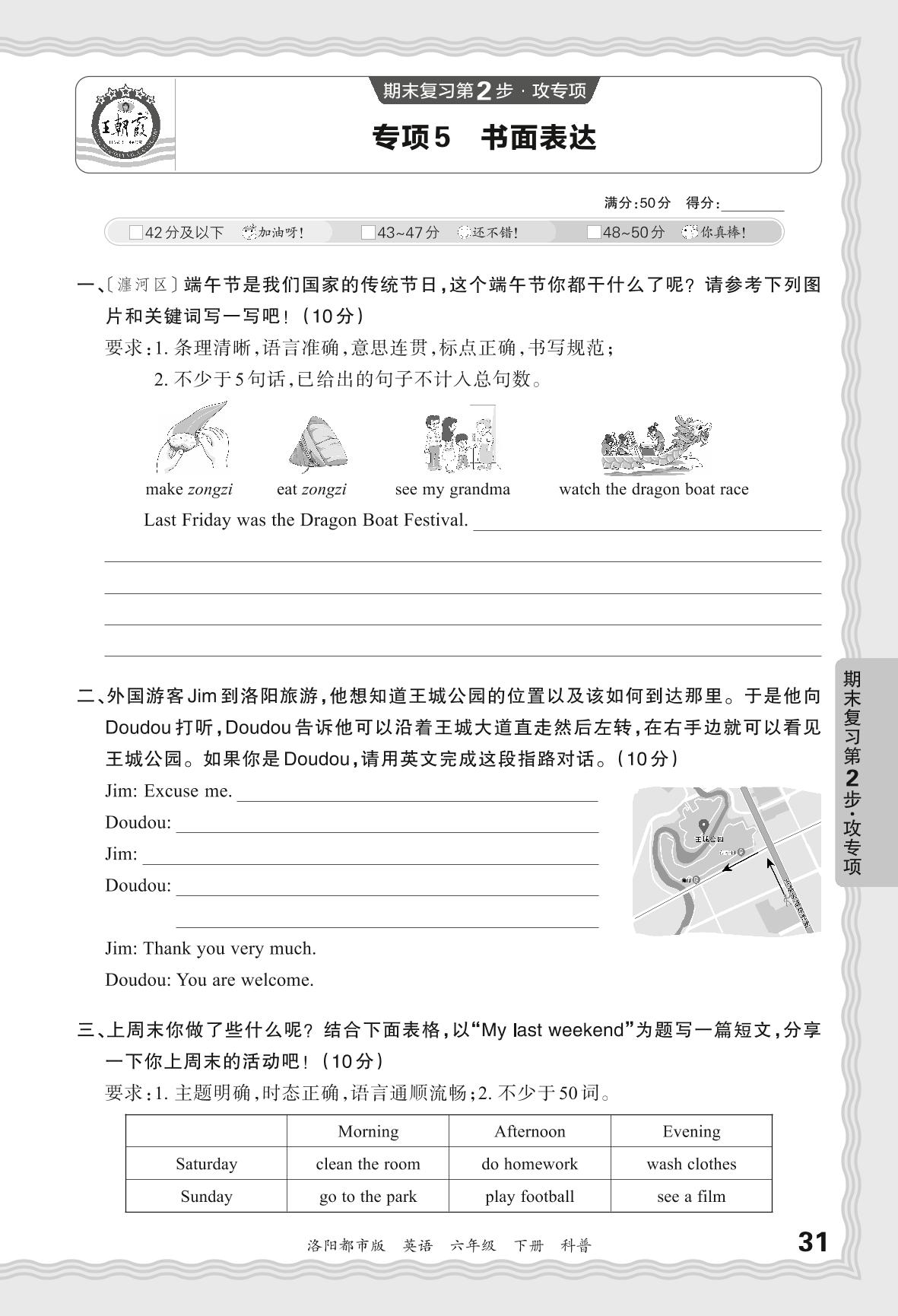 2024春下册六年级英语科普版 期末专项卷洛阳版·书面表达【5】