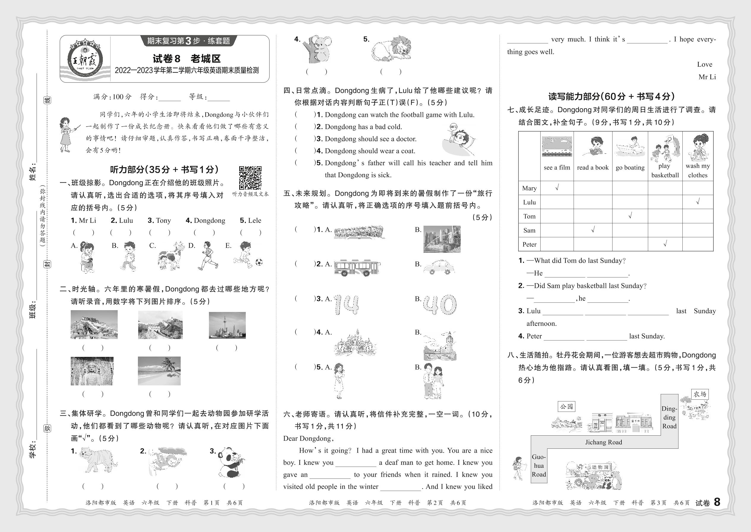 河南省洛阳市老城区2022—2023学年第二学期六年级英语期末质量检测(科普版)【8】