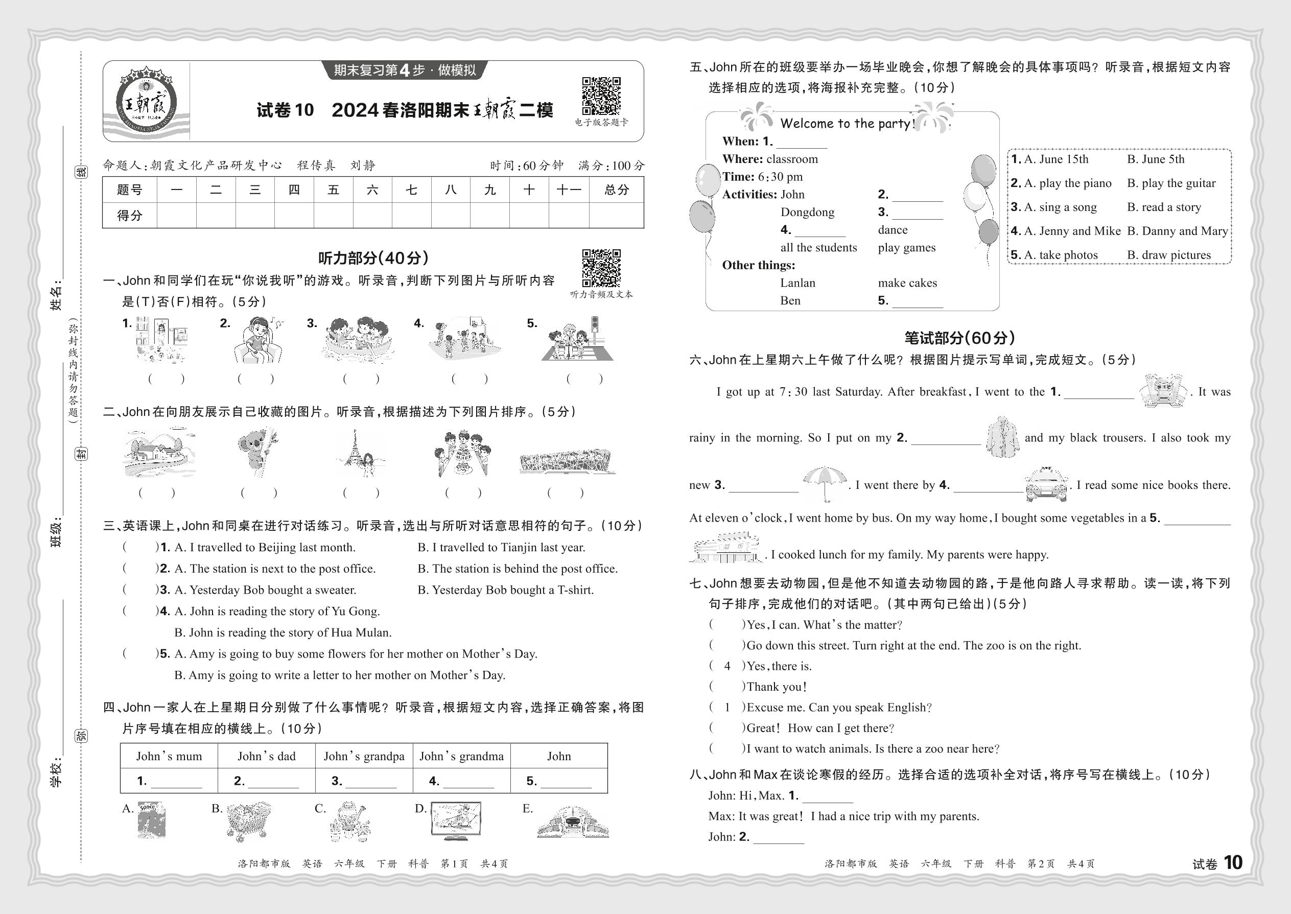 2024春下册六年级英语科普版 河南洛阳期末王朝霞二模【10】