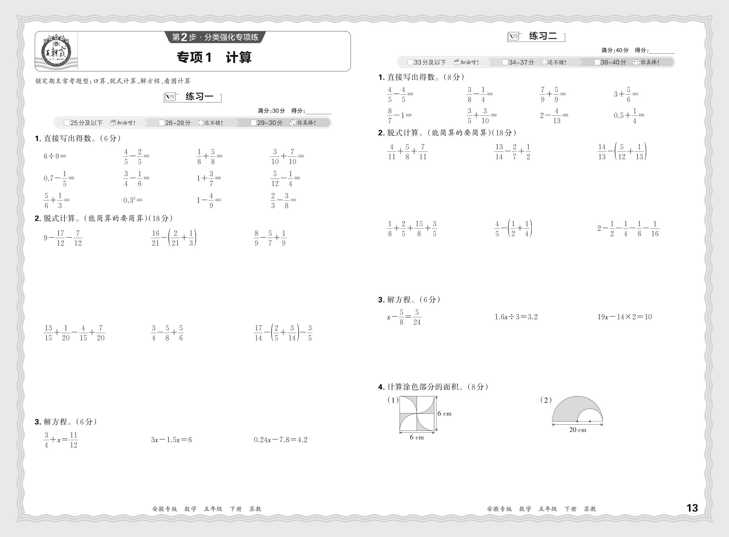 2024春下册五年级数学苏教版 期末专项卷安徽版·计算【1】
