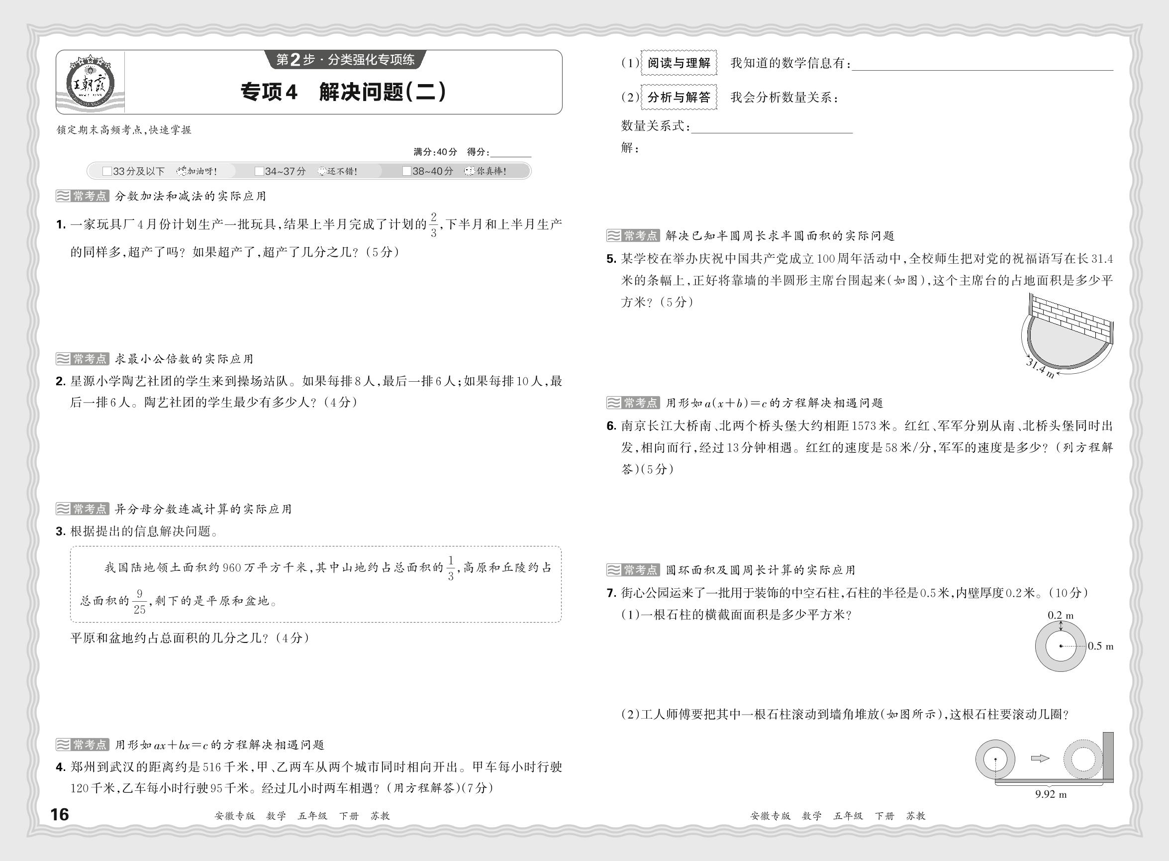 2024春下册五年级数学苏教版 期末专项卷安徽版·解决问题(二)【4】