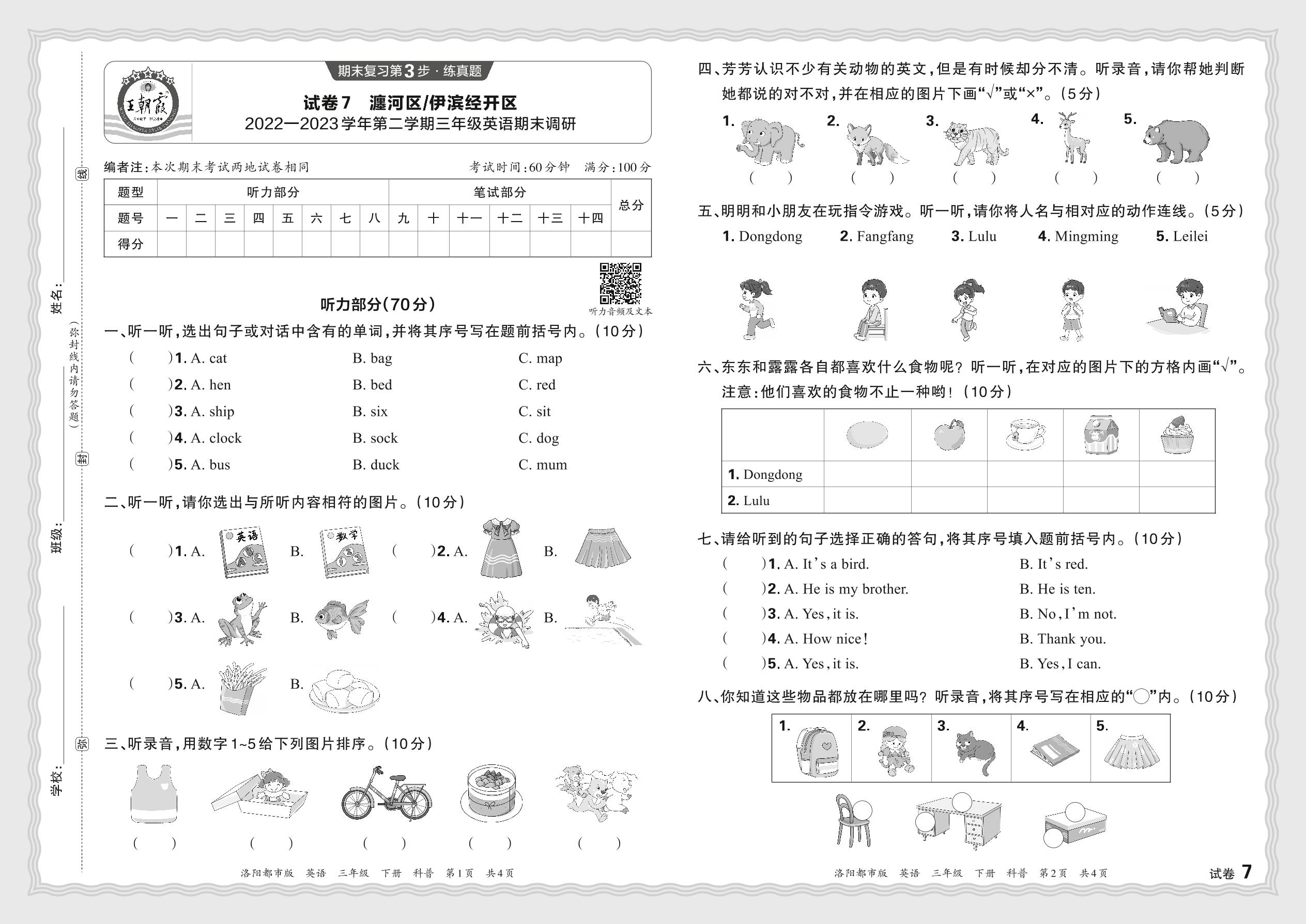 河南省洛阳市瀍河区、伊滨经开区2022—2023学年第二学期三年级英语期末调研(科普版)【7】