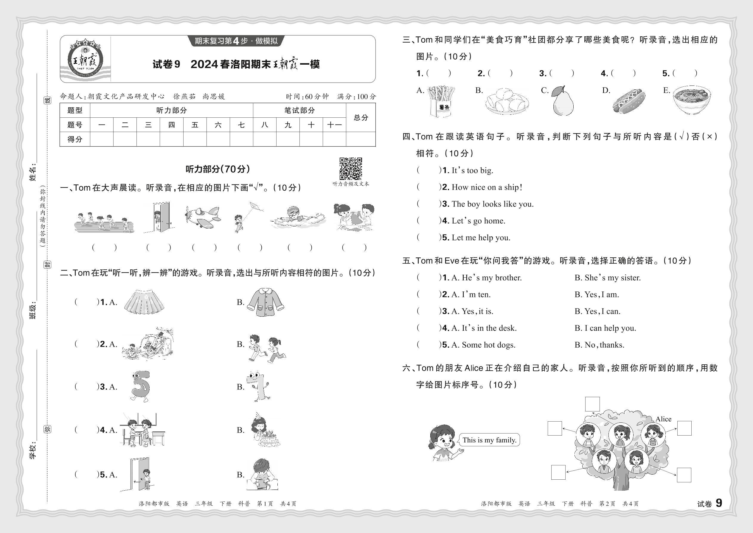 2024春下册三年级英语科普版 河南洛阳期末王朝霞一模【9】