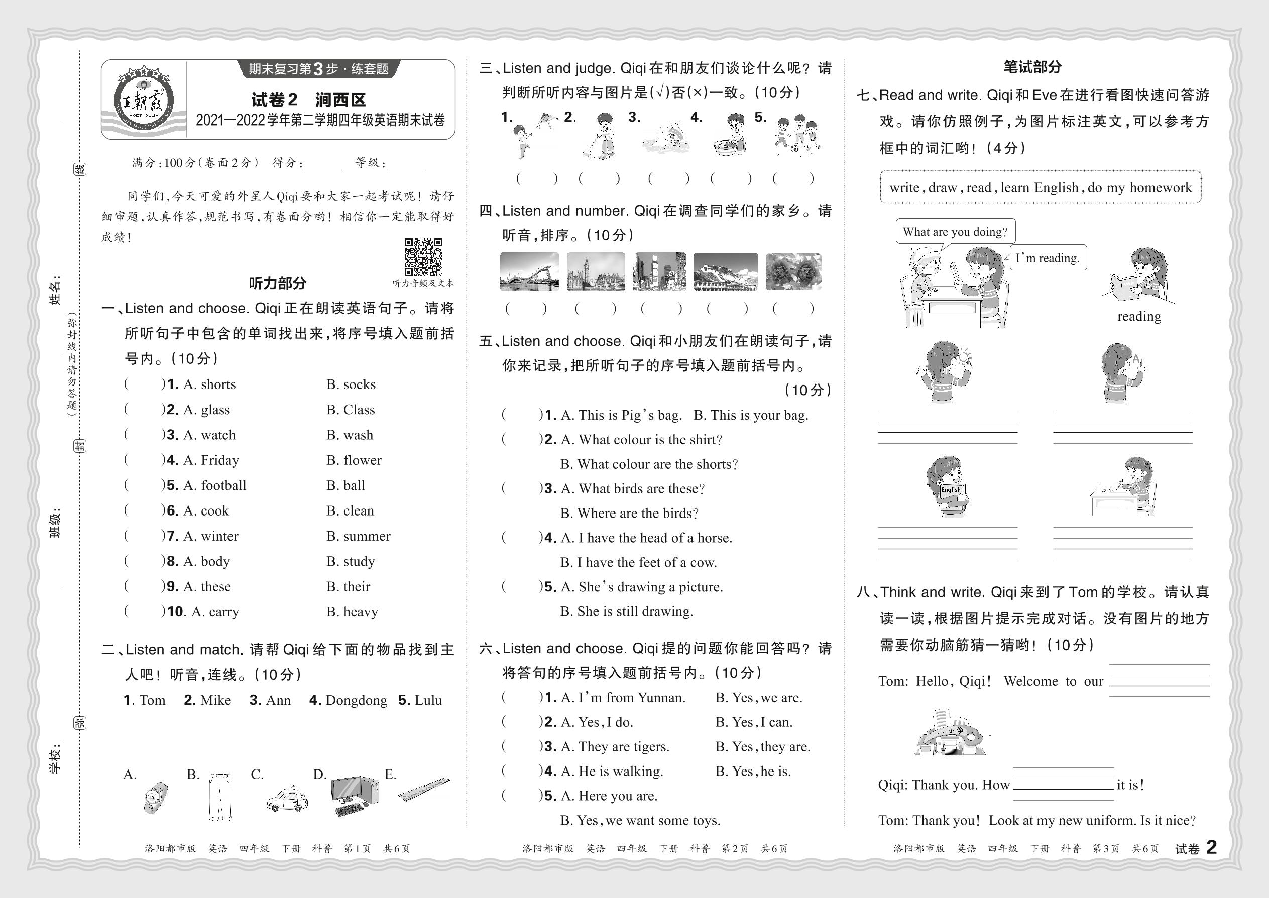 河南省洛阳市涧西区2021—2022学年第二学期四年级英语期末试卷(科普版)【2】