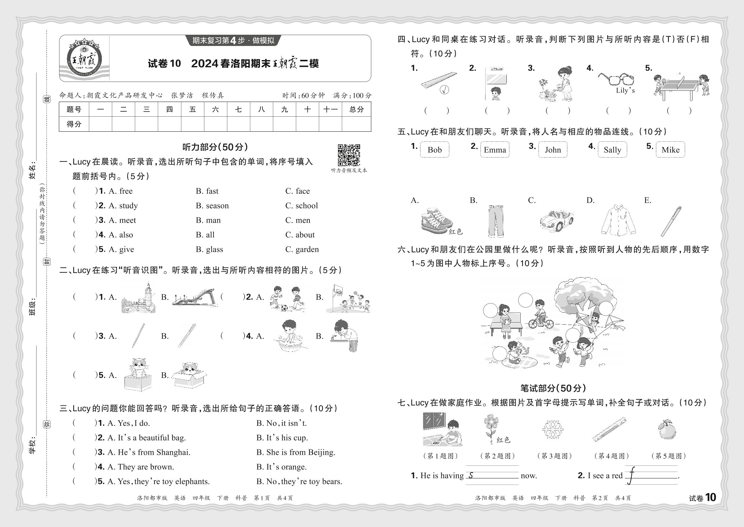 2024春下册四年级英语科普版 河南洛阳期末王朝霞二模【10】