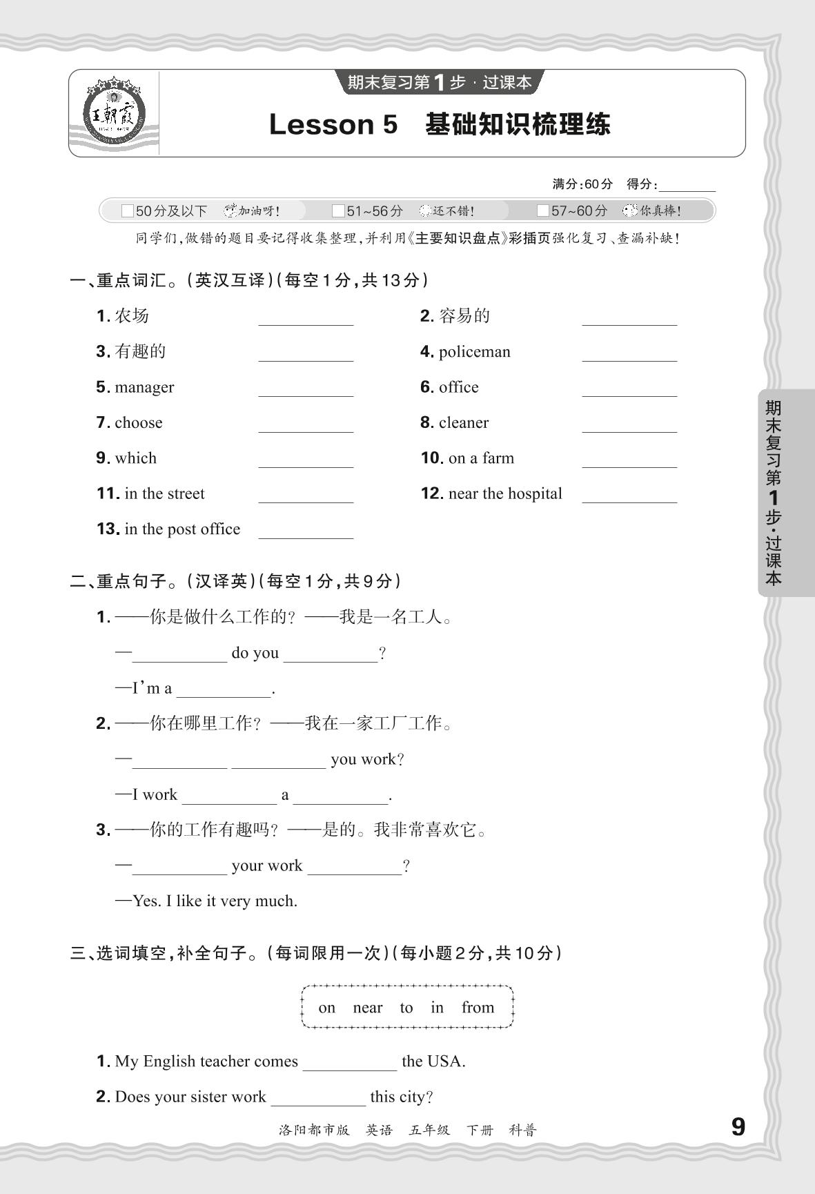 2024春下册五年级英语科普版 期末过课本洛阳版·Lesson 5 基础知识梳理练