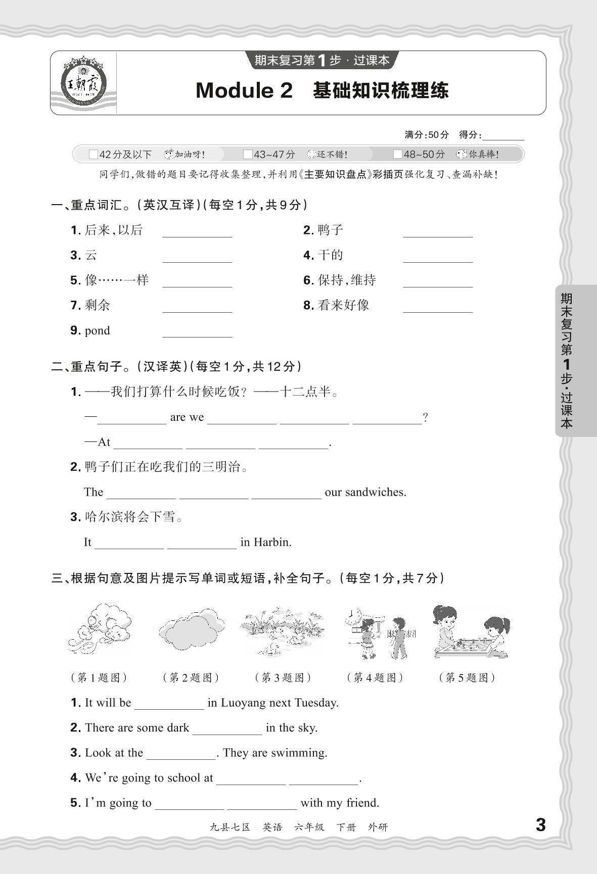 2024春下册六年级英语外研版 期末过课本洛阳版·Module 2 基础知识梳理练