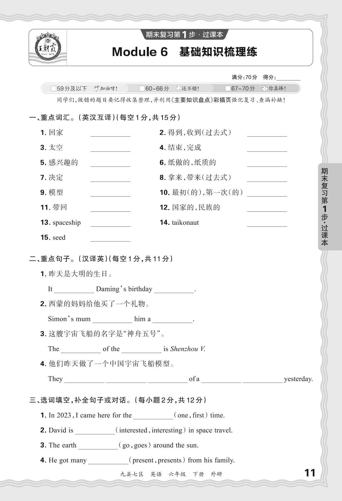 2024春下册六年级英语外研版 期末过课本洛阳版·Module 6 基础知识梳理练