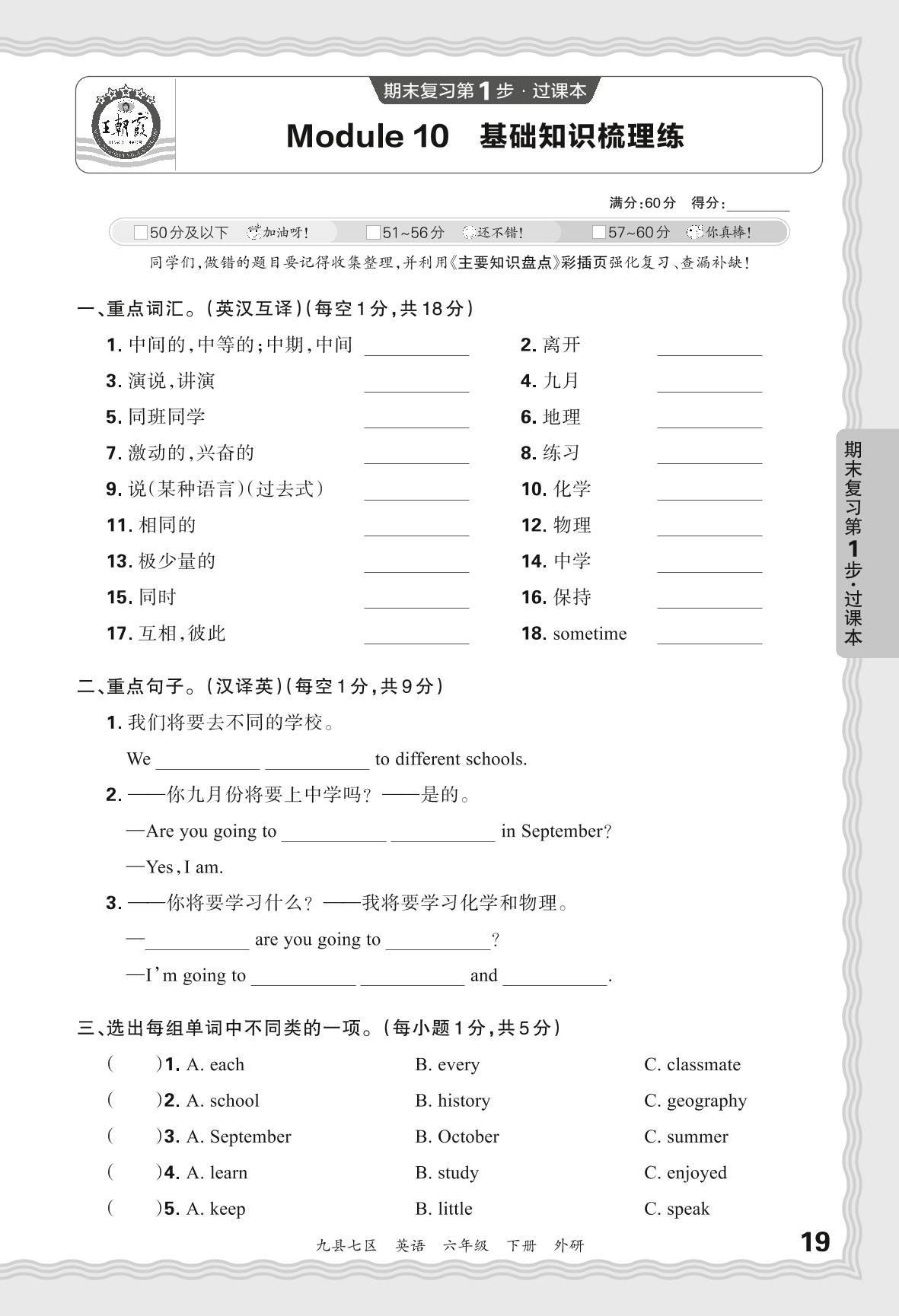 2024春下册六年级英语外研版 期末过课本洛阳版·Module 10 基础知识梳理练