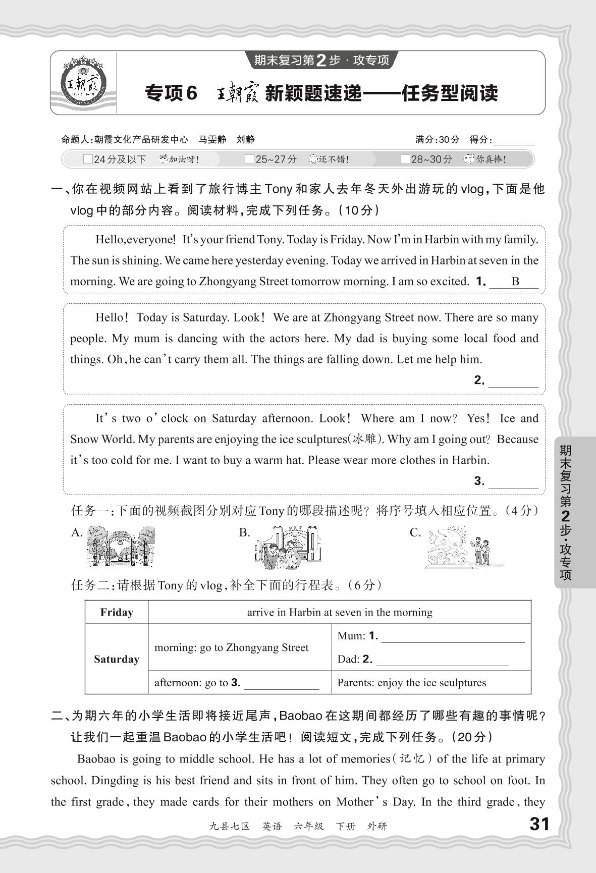 2024春下册六年级英语外研版 期末专项卷洛阳版·王朝霞新颖题速递——任务型阅读【6】