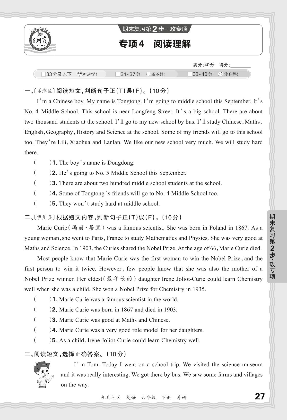 2024春下册六年级英语外研版 期末专项卷洛阳版·阅读理解【4】