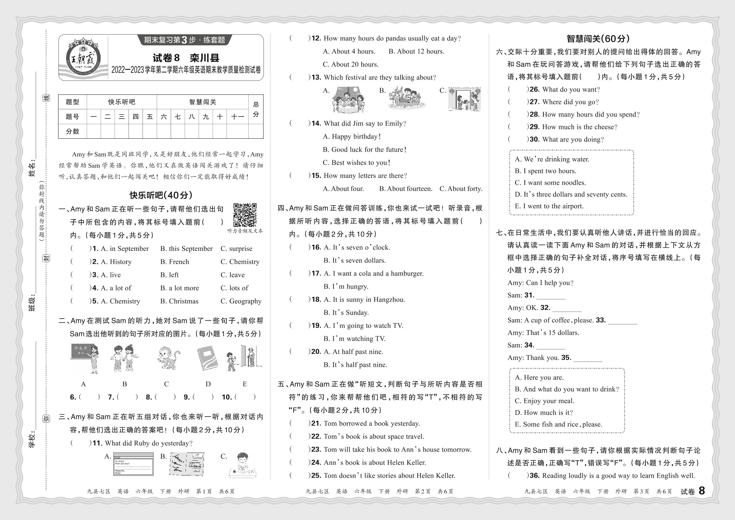 河南省洛阳市栾川县2022—2023学年第二学期六年级英语期末教学质量检测试卷(外研版)【8】