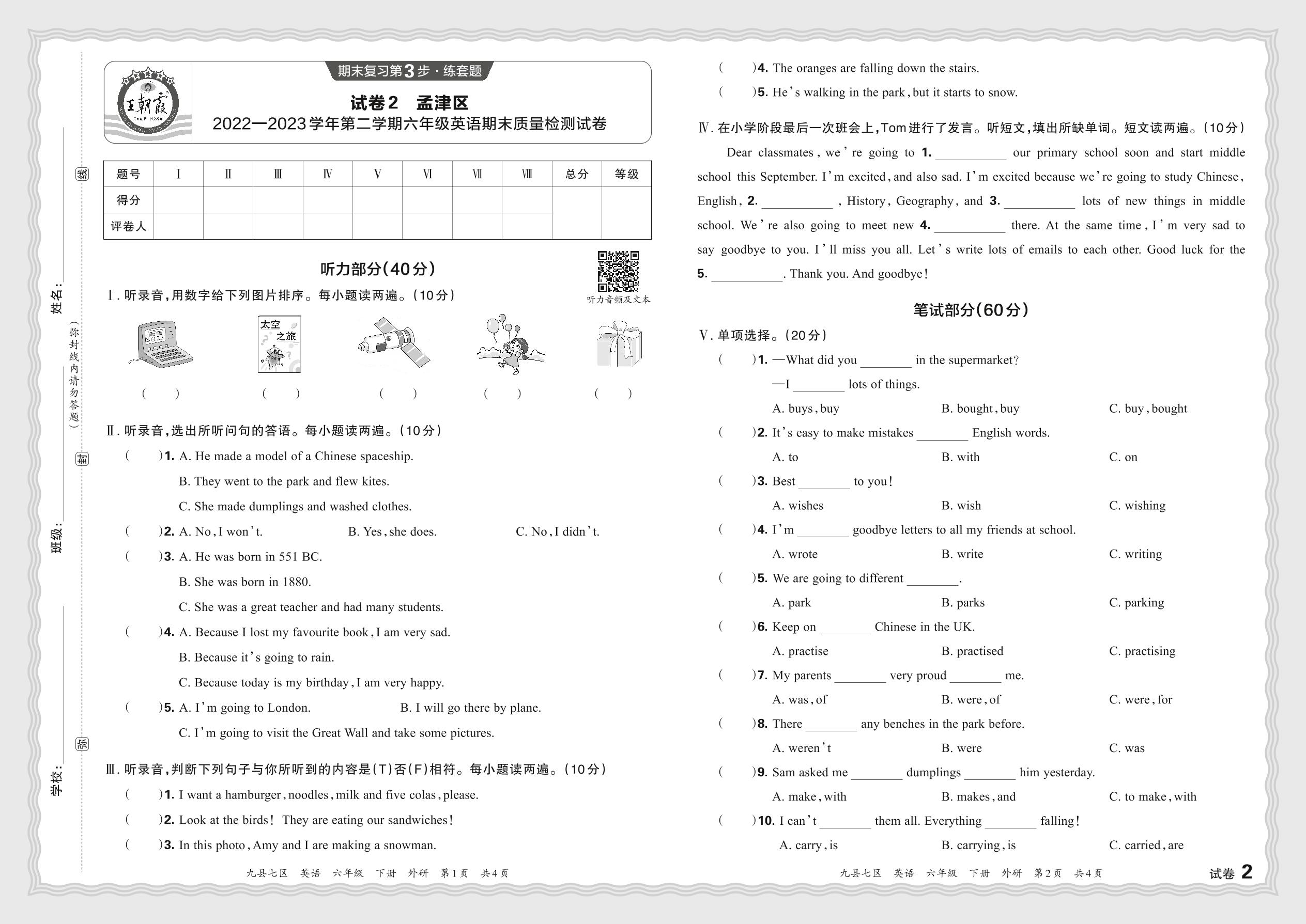 河南省洛阳市孟津区2022—2023学年第二学期六年级英语期末质量检测试卷(外研版)【2】