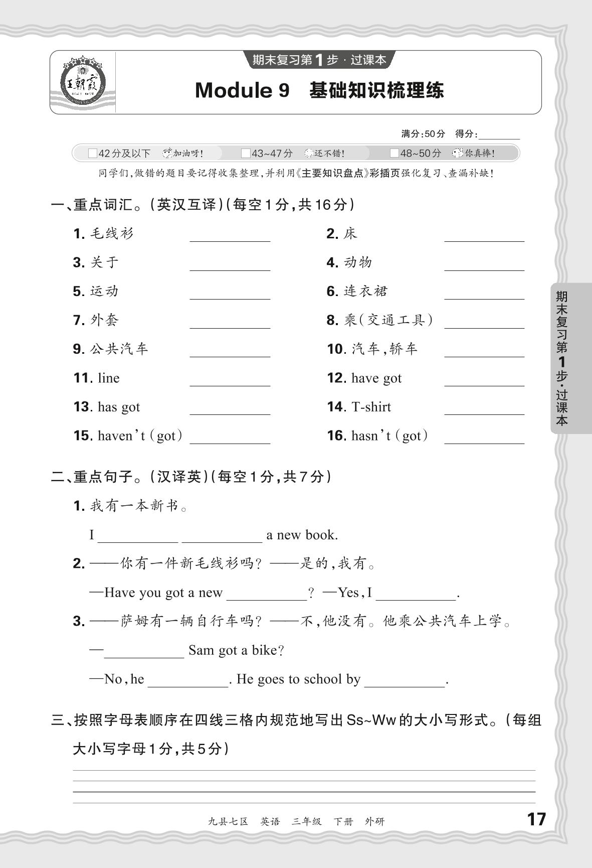 2024春下册三年级英语外研版 期末过课本洛阳版·Module 9