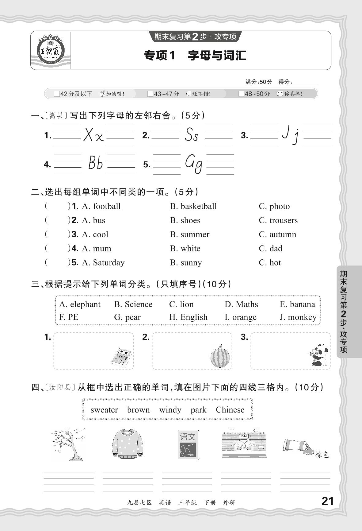 2024春下册三年级英语外研版 期末专项卷洛阳版·字母与词汇【1】