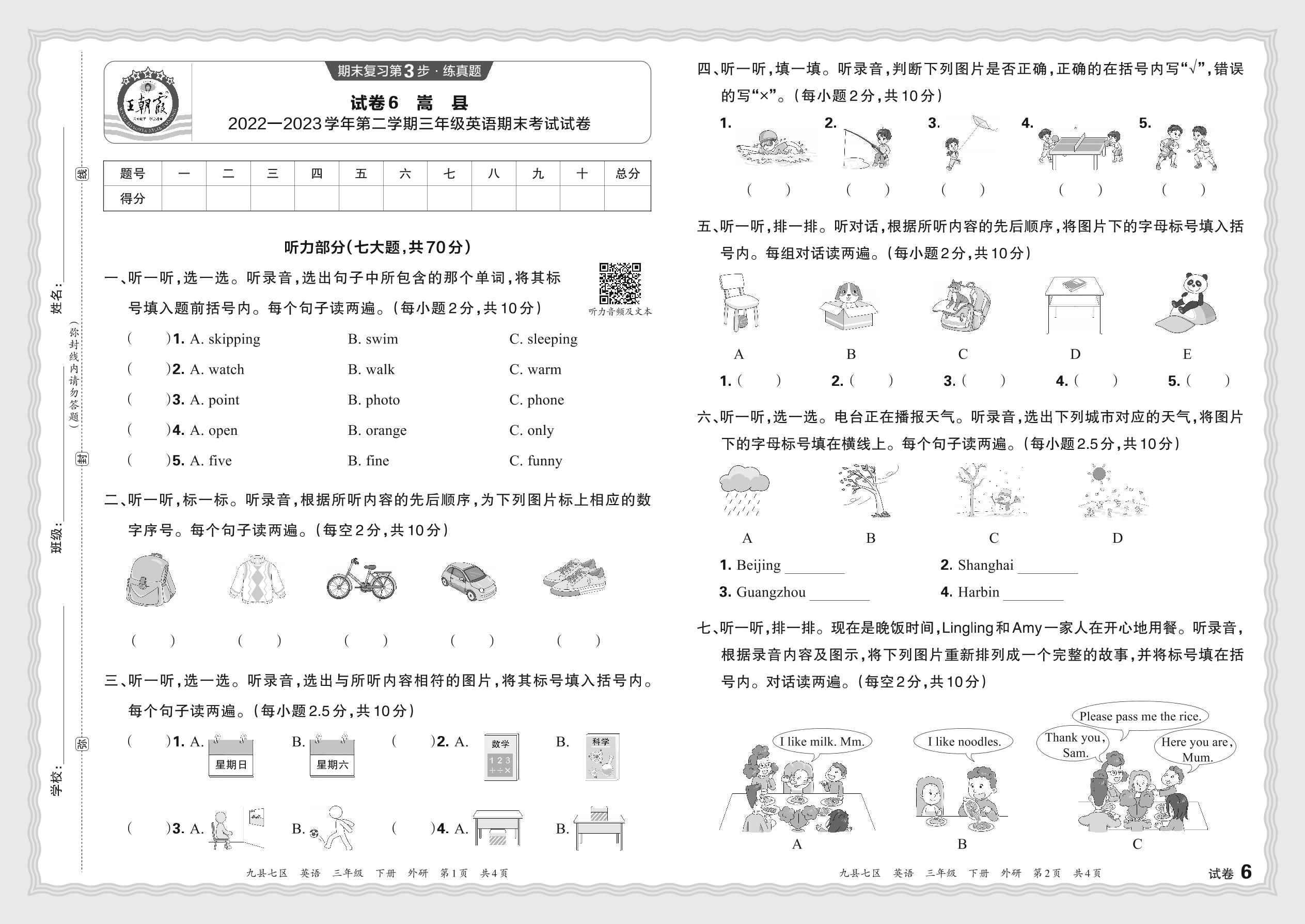 三年级英语外研版(三起始)下册期末卷