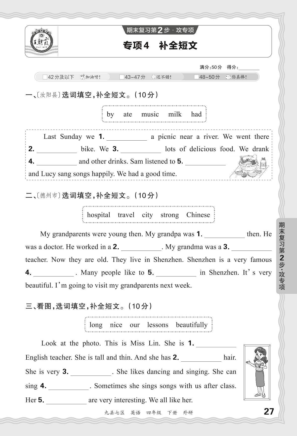 2024春下册四年级英语外研版 期末专项卷洛阳版·补全短文【4】