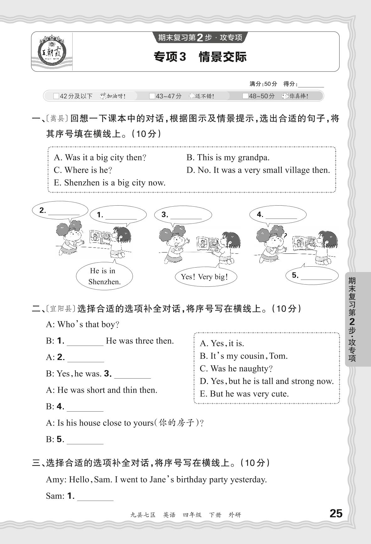 2024春下册四年级英语外研版 期末专项卷洛阳版·情景交际【3】