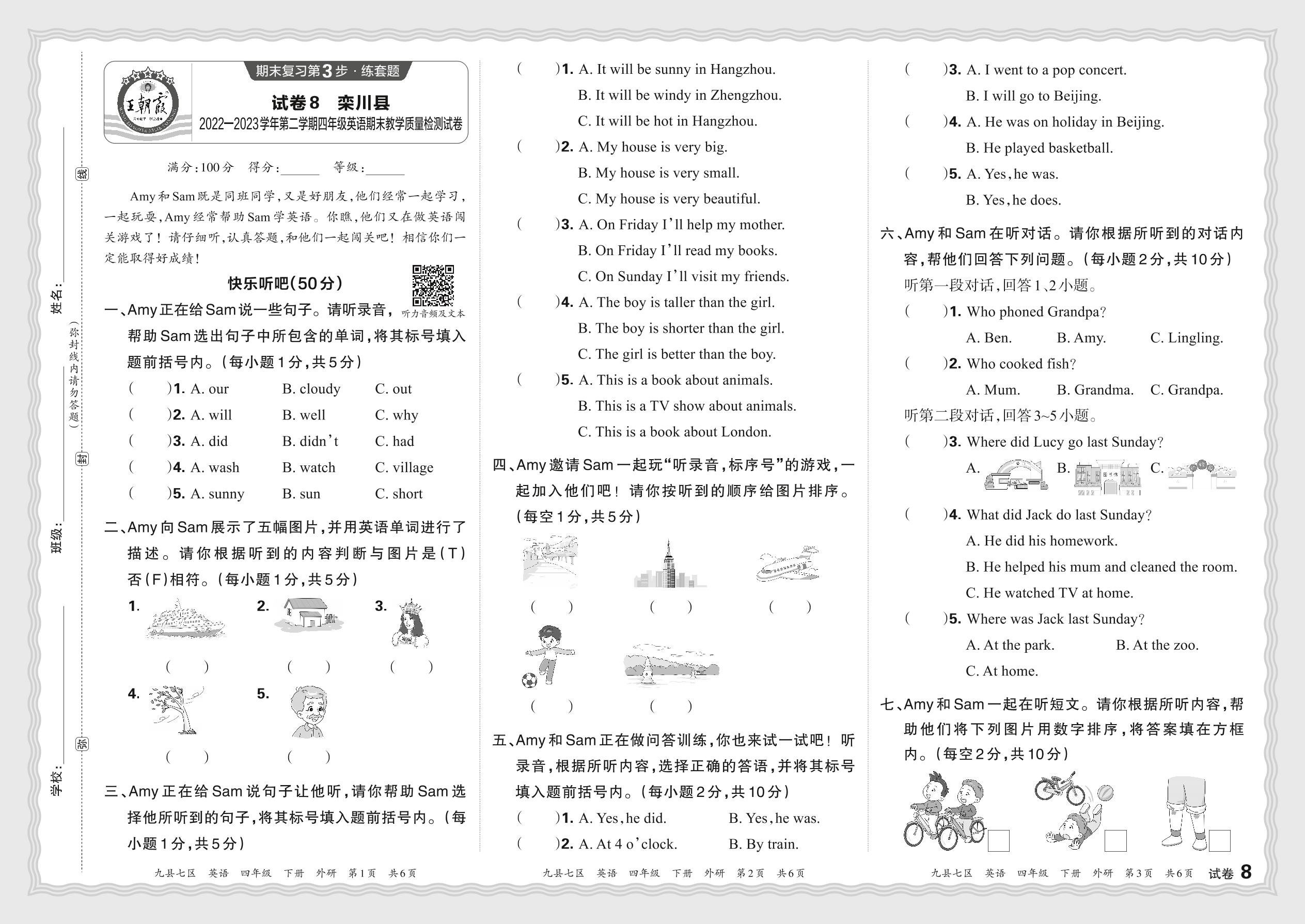 河南省洛阳市栾川县2022—2023学年第二学期四年级英语期末教学质量检测试卷(外研版)【8】