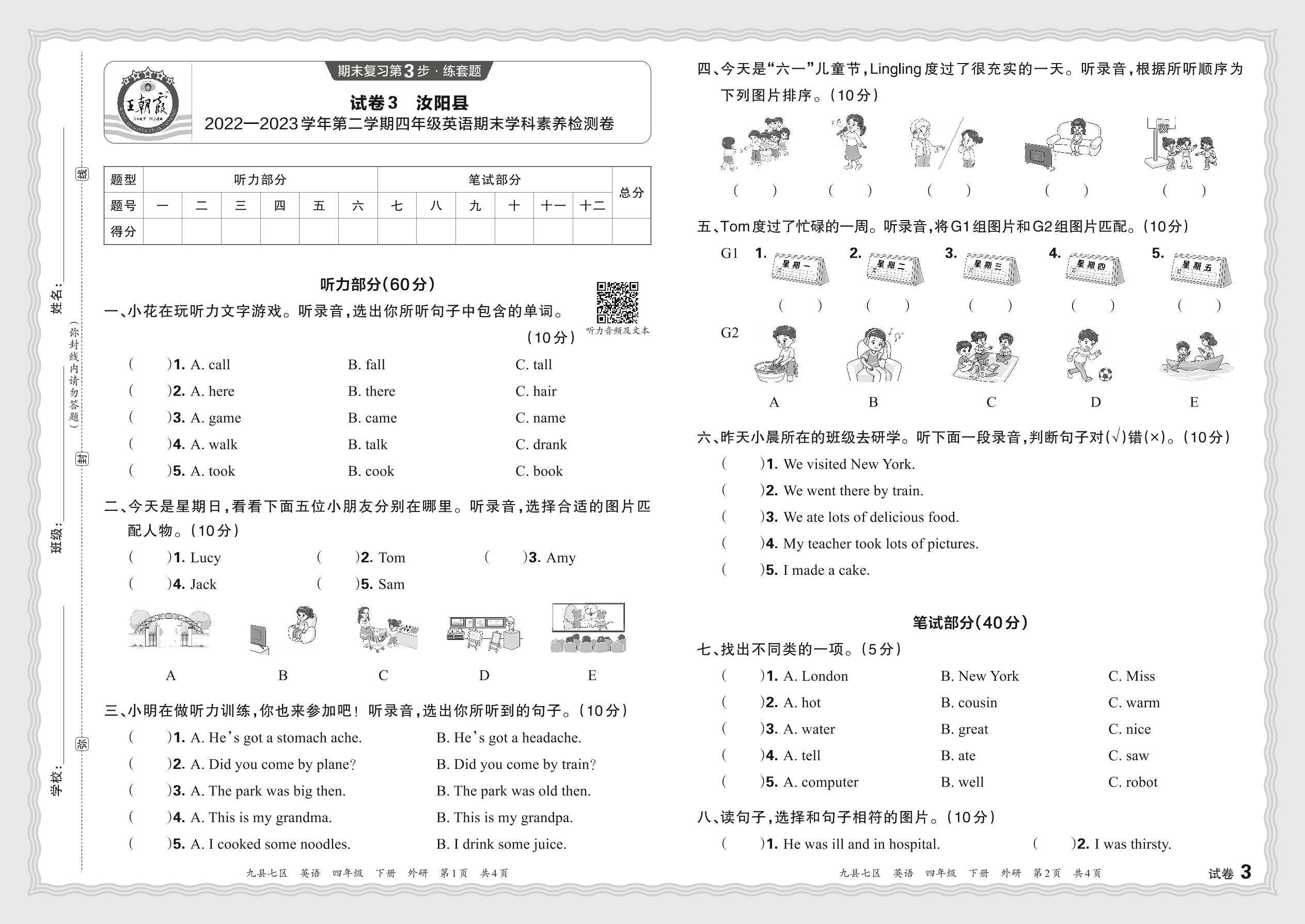 河南省洛阳市汝阳县2022—2023学年第二学期四年级英语期末学科素养检测卷(外研版)【3】