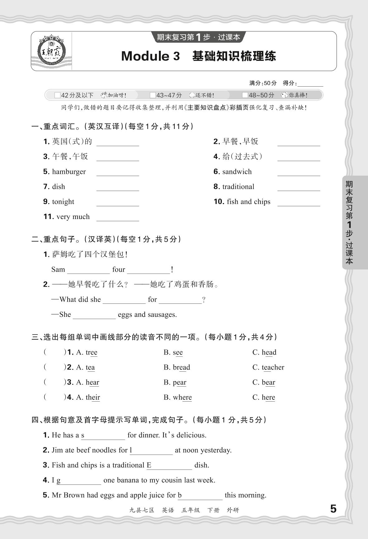 2024春下册五年级英语外研版 期末过课本洛阳版·Module 3