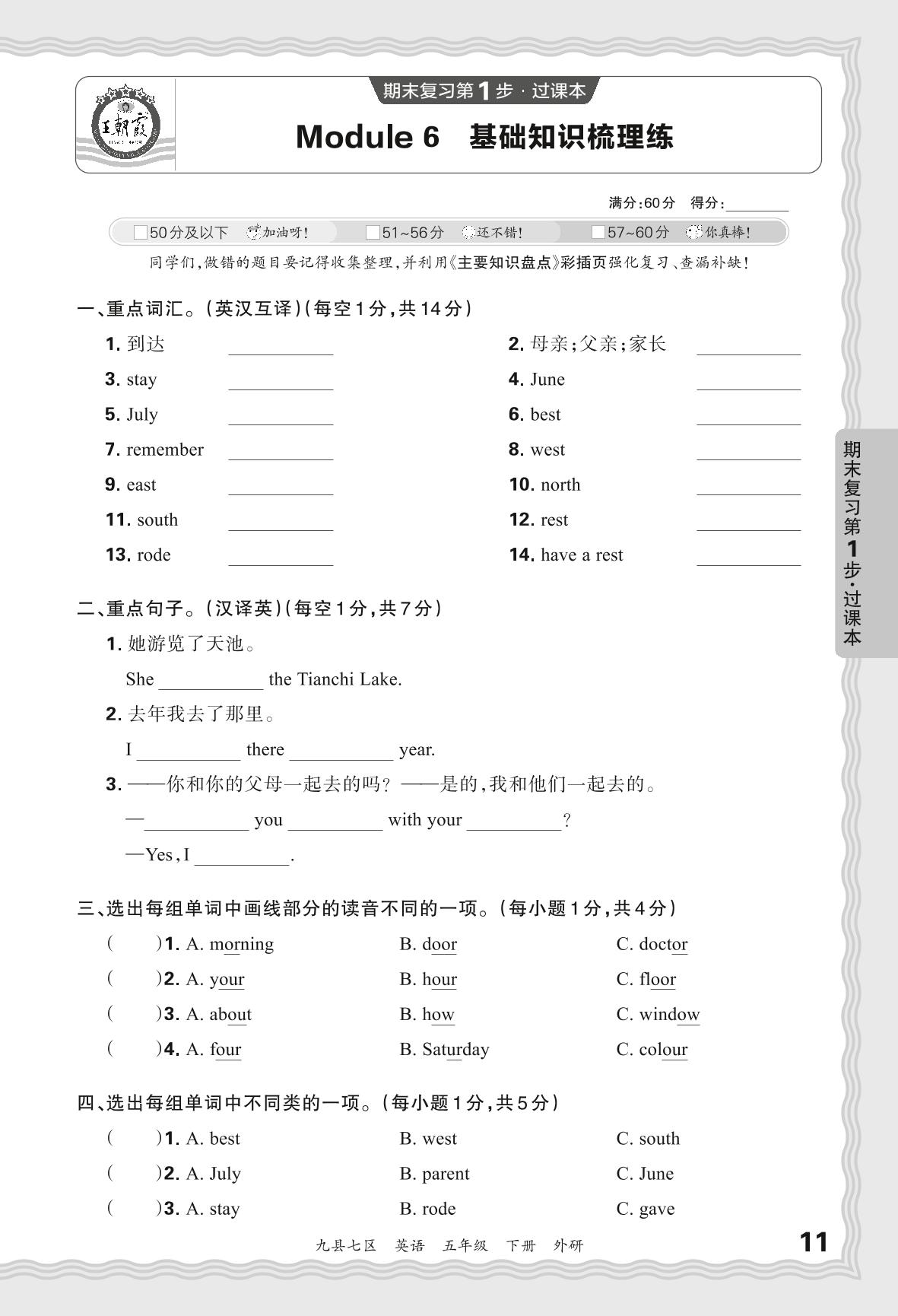 2024春下册五年级英语外研版 期末过课本洛阳版·Module 6