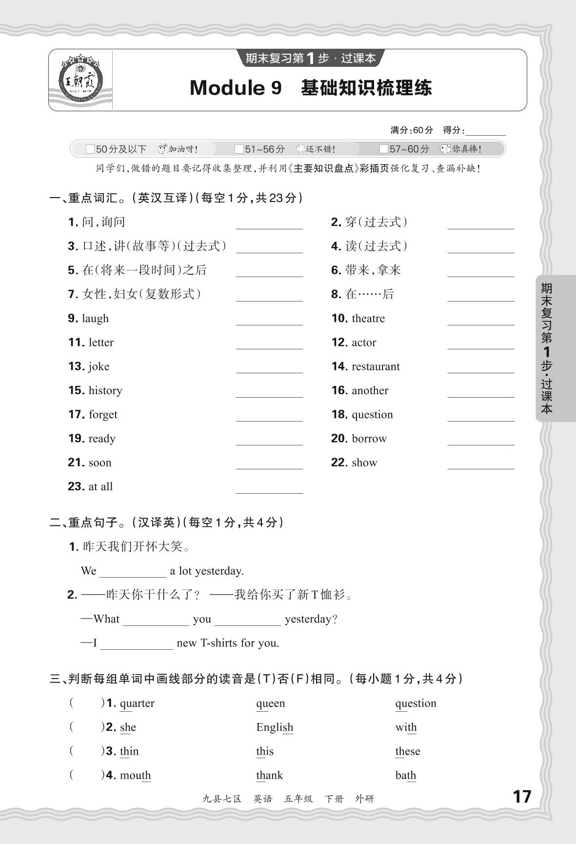 2024春下册五年级英语外研版 期末过课本洛阳版·Module 9