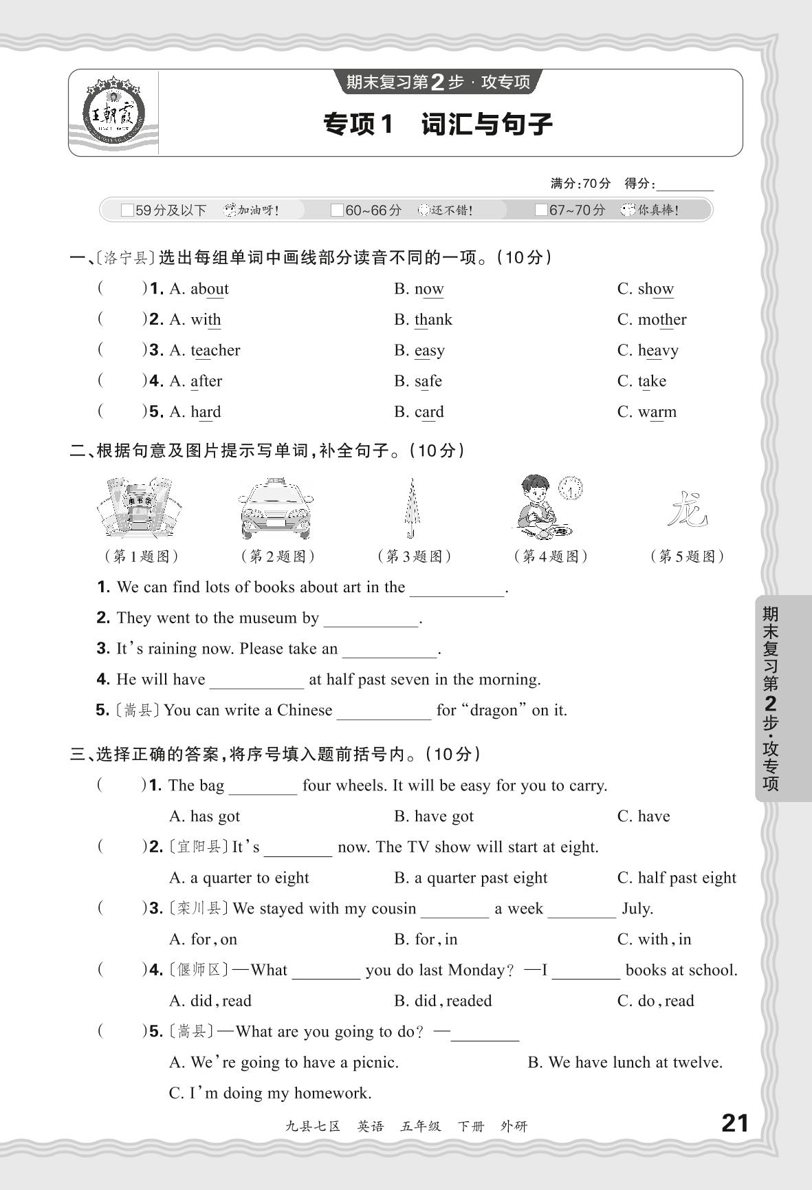 2024春下册五年级英语外研版 期末专项卷洛阳版·词汇与句子【1】