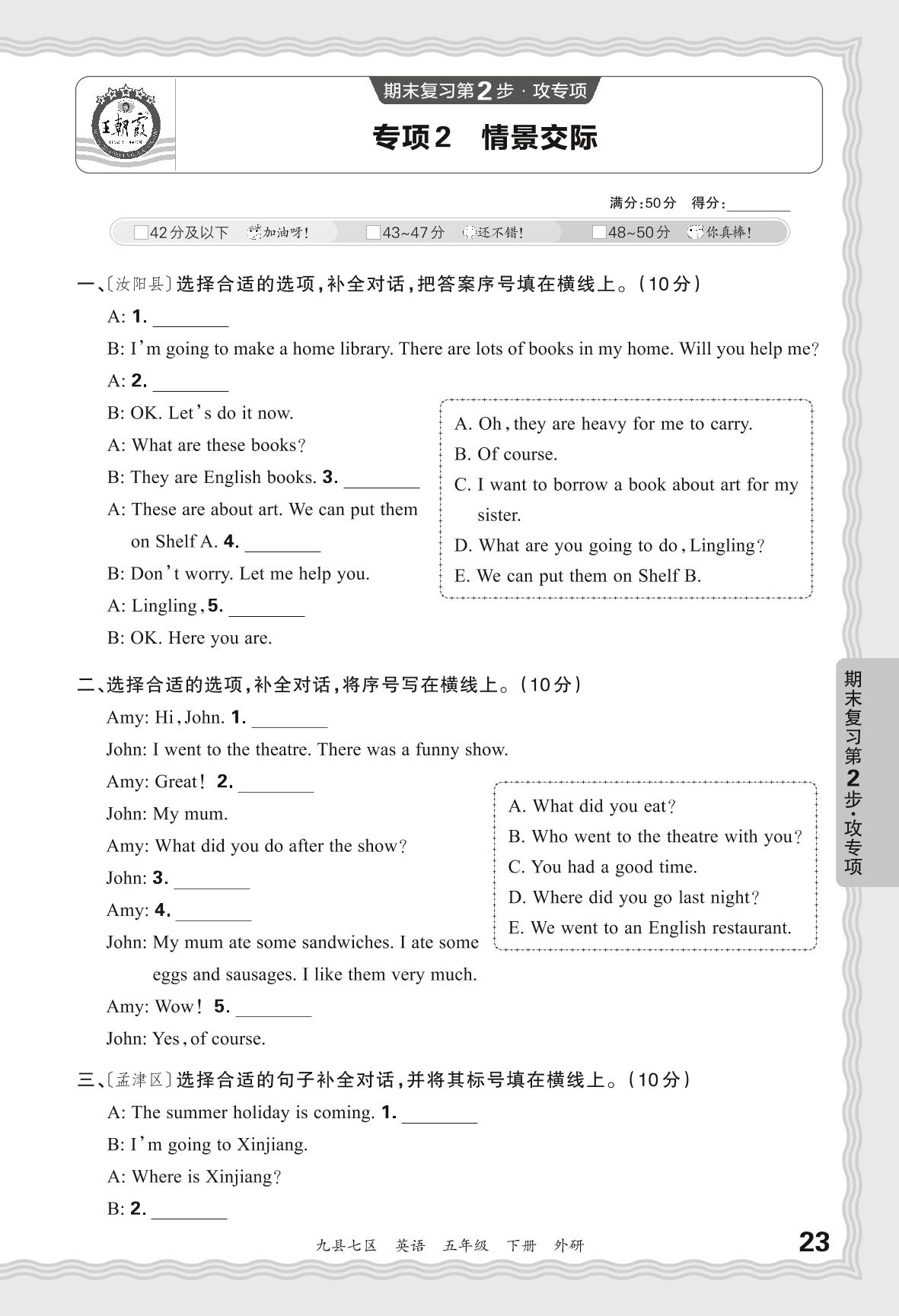 2024春下册五年级英语外研版 期末专项卷洛阳版·情景交际【2】