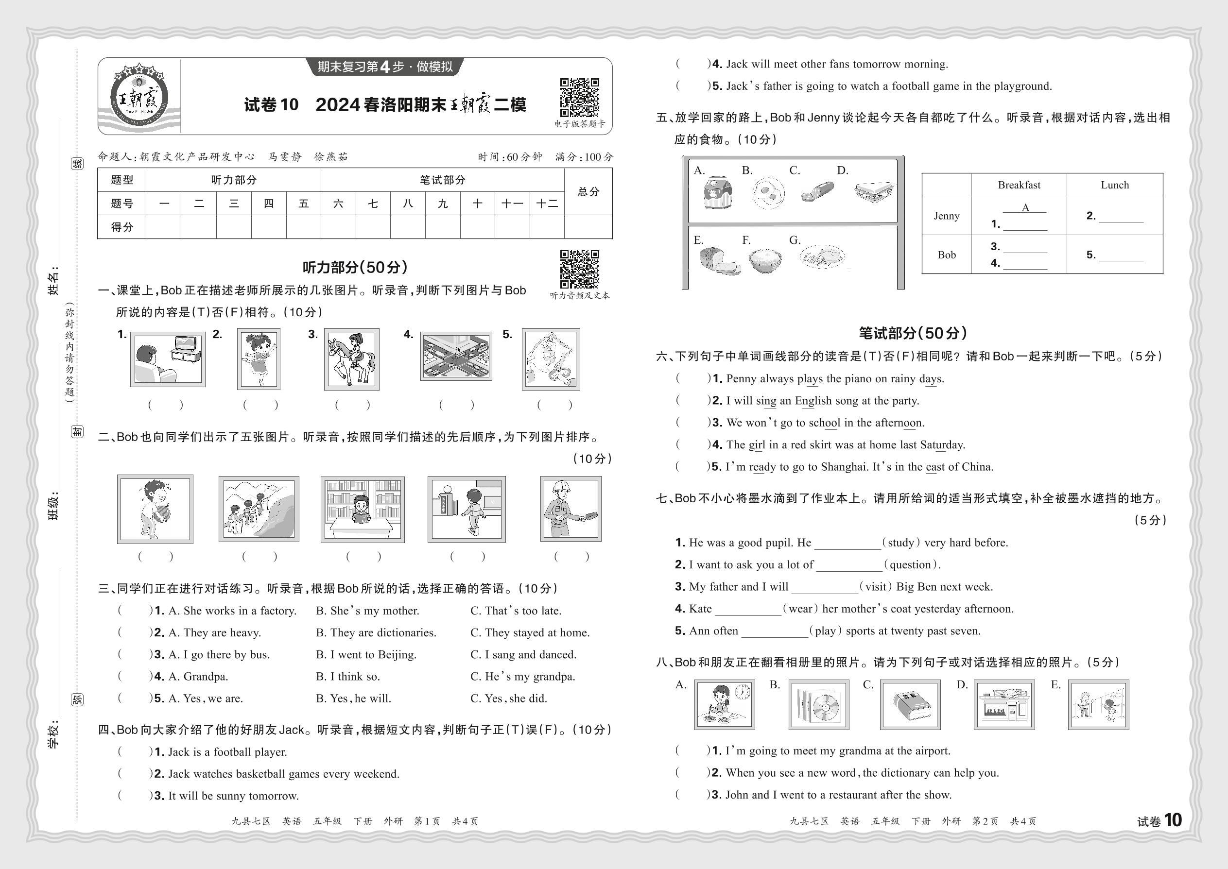 2024春下册五年级英语外研版 河南洛阳期末王朝霞二模【10】