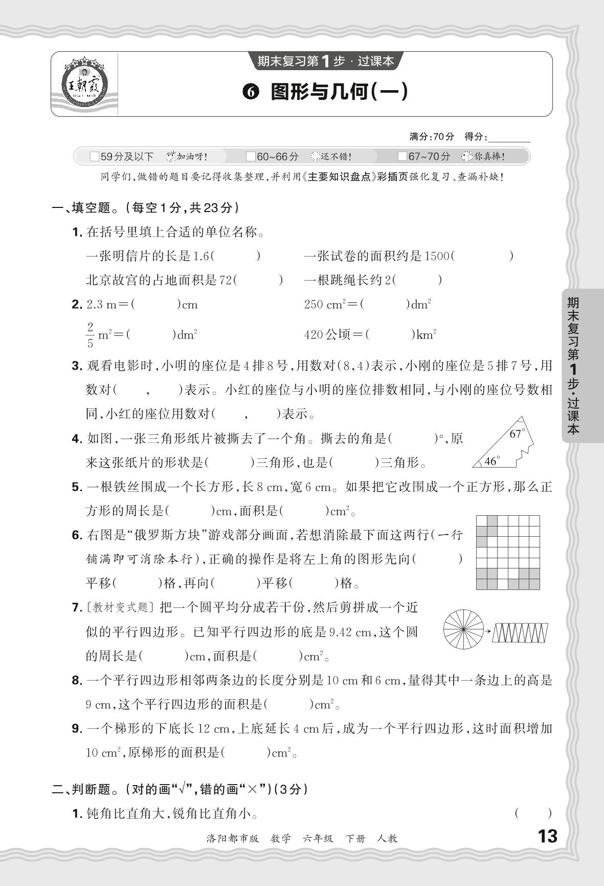 2024春下册六年级数学人教版 期末过课本洛阳版·图形与几何(一)【6】