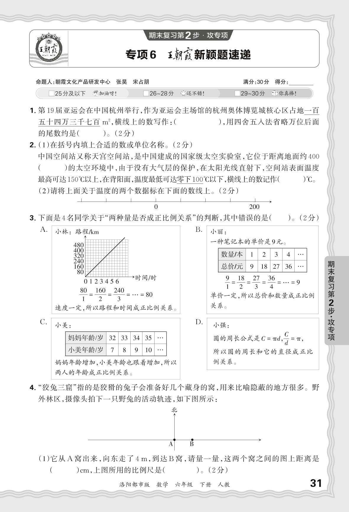 2024春下册六年级数学人教版 期末专项卷洛阳版·王朝霞新颖题速递【6】
