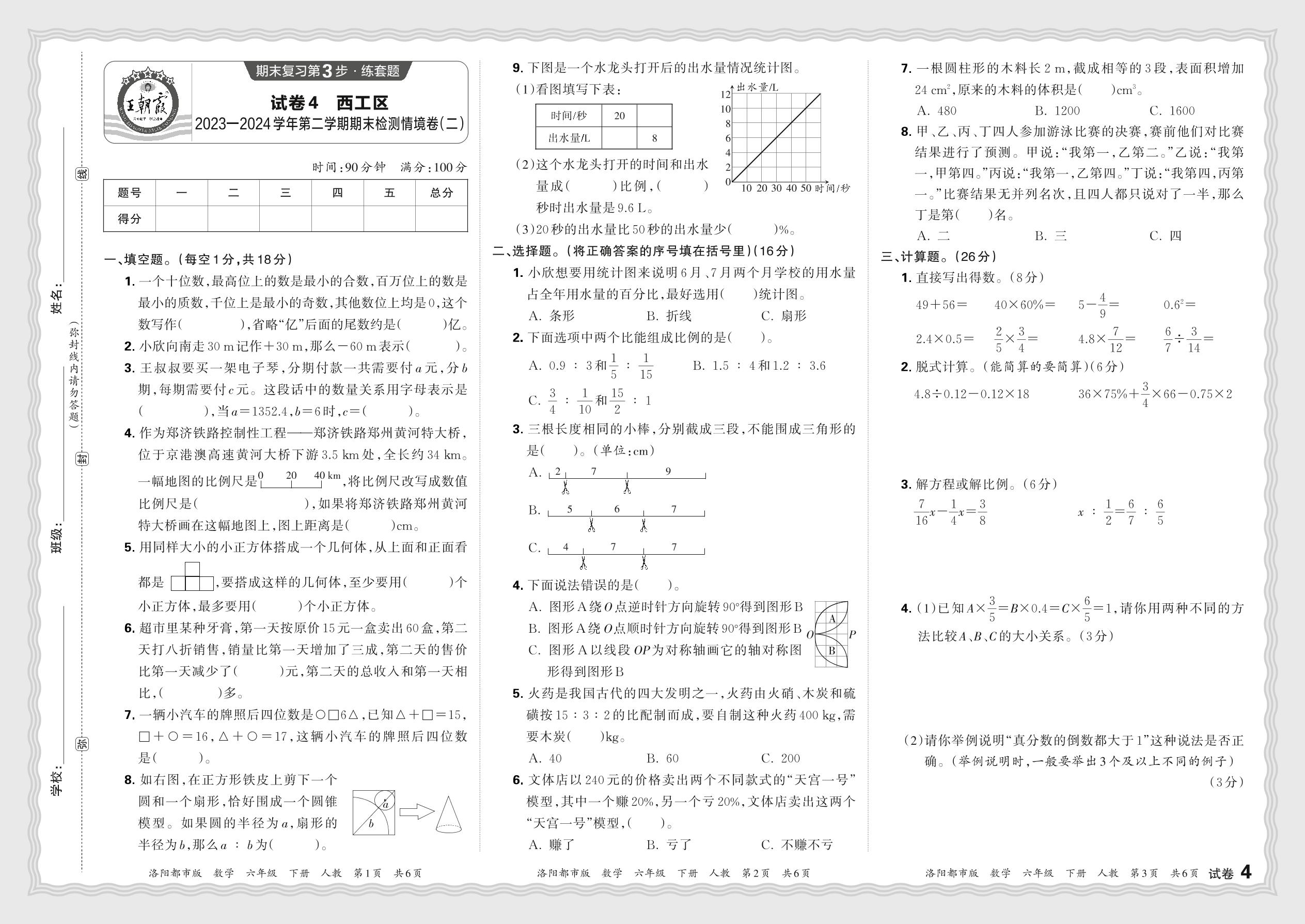 河南省洛阳市西工区2023—2024学年第二学期六年级期末检测情境卷(二)(人教版)【4】