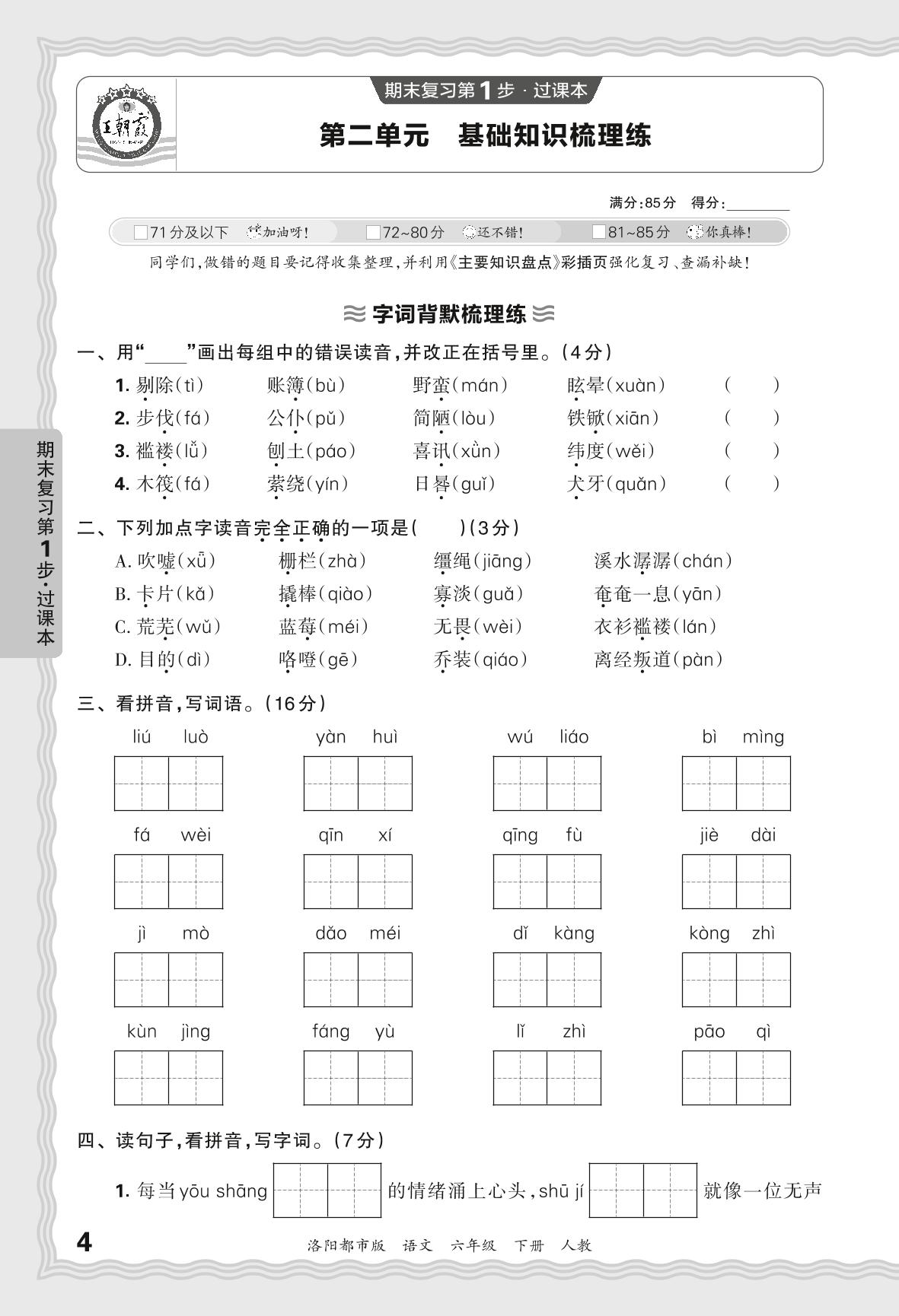 2024春下册六年级语文人教版 期末过课本洛阳版·第二单元 基础知识梳理练