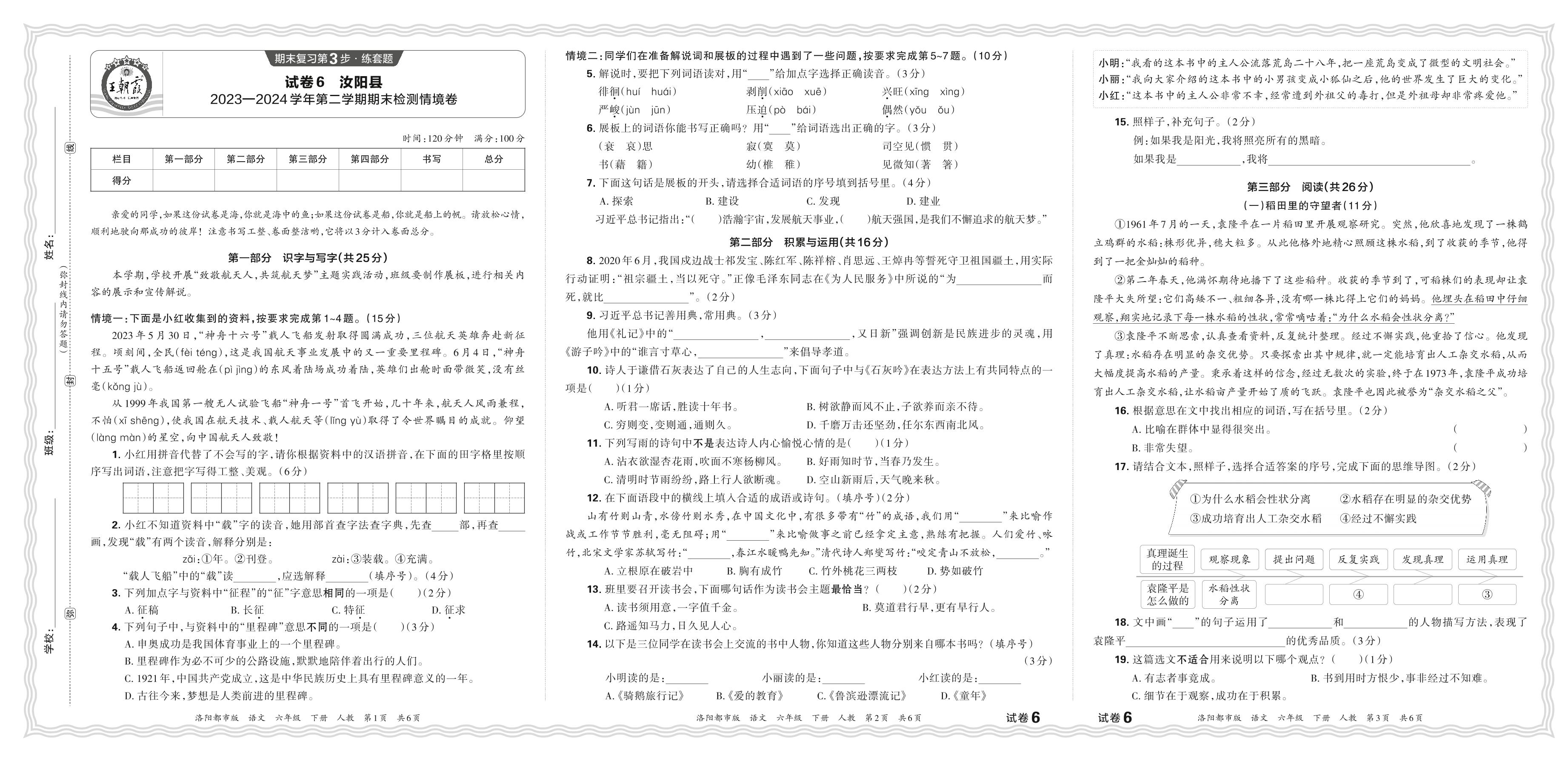 河南省洛阳市汝阳县2023—2024学年第二学期六年级语文期末检测情境卷(人教版)【6】