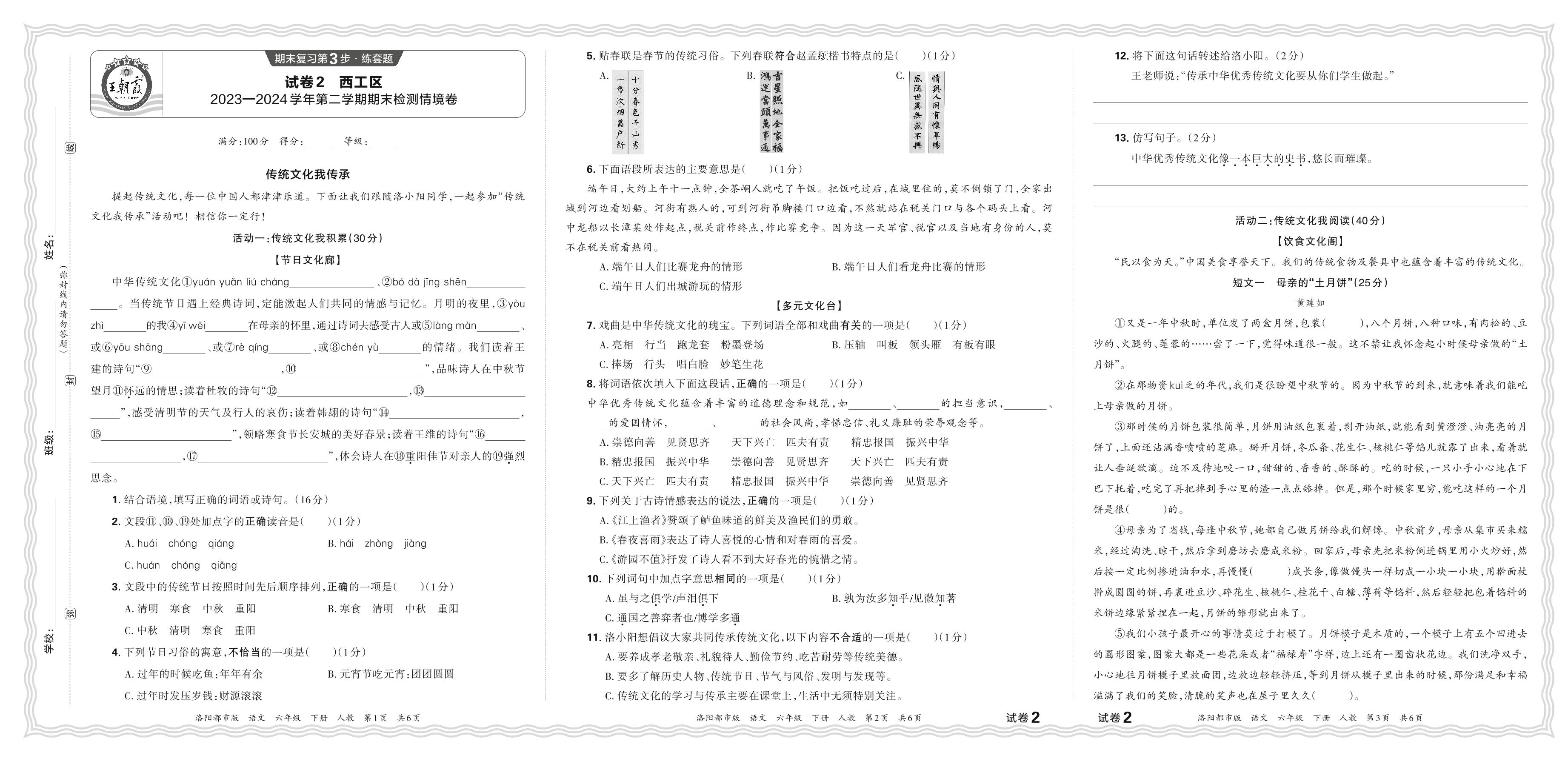 河南省洛阳市西工区2023—2024学年第二学期六年级语文期末检测情境卷(人教版)【2】