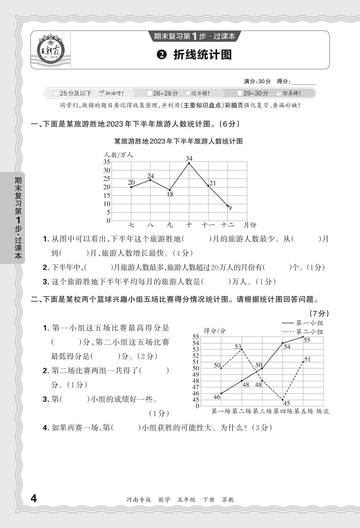 2024春下册五年级数学苏教版 期末过课本河南版·折线统计图【2】