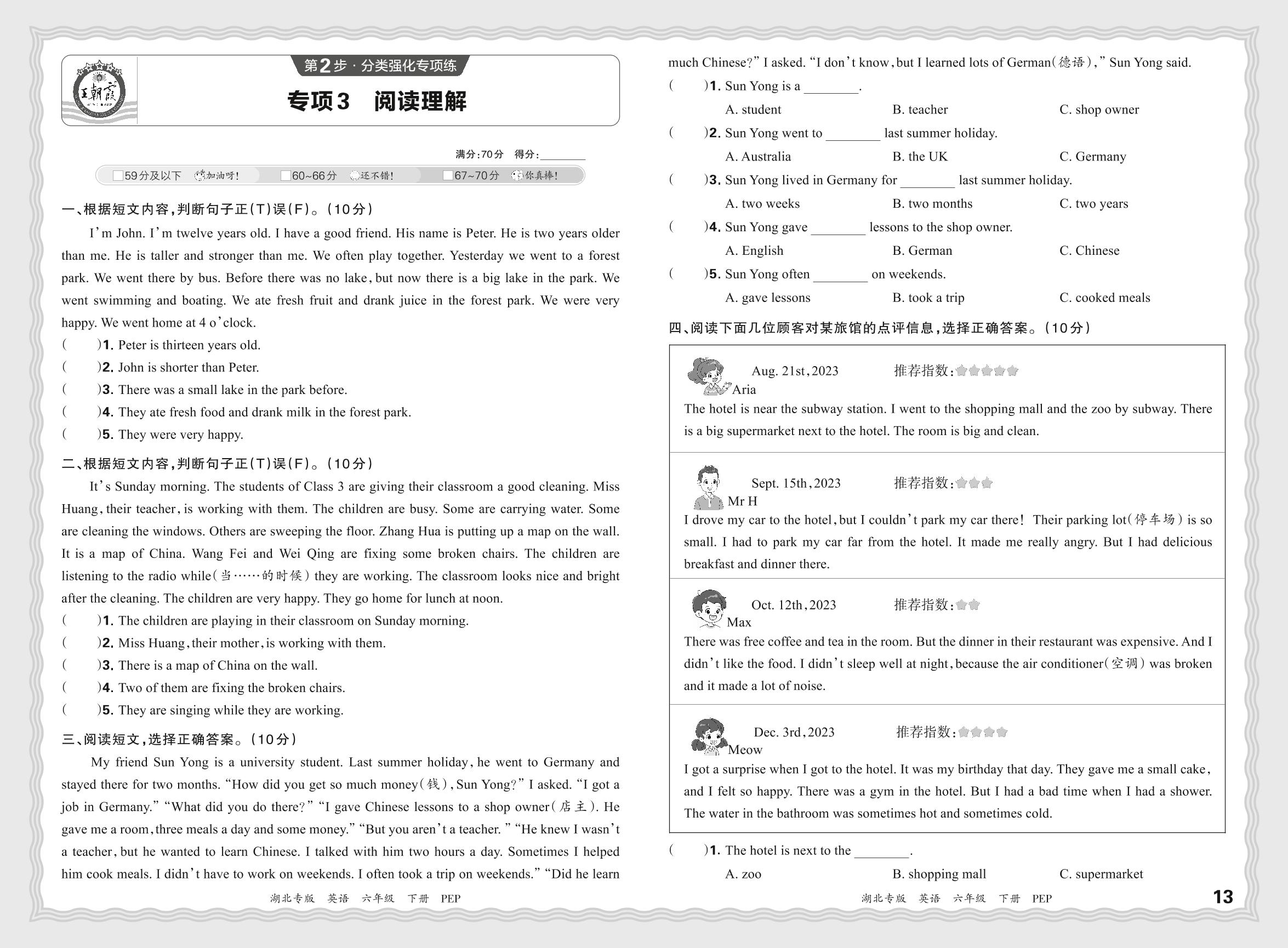 2024春下册六年级英语人教PEP版 期末专项卷湖北版·阅读理解【3】